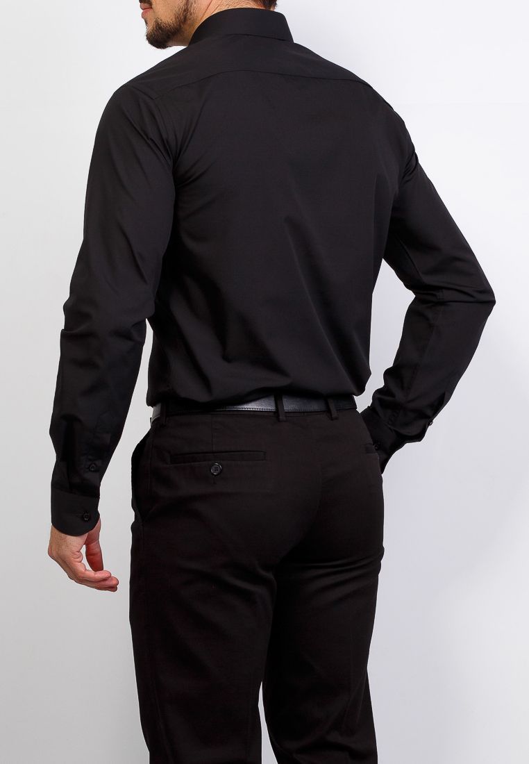 Цвет: Черный Рисунок: Без рисунка..показать Состав: 90% хлопок 10% полиэстер Модель: Зауженная Ворот: Французский маленький Караман: отсутствует Манжет: классический закругленный на пуговицах 6 см Силуэт: Полуприталенный силуэт / Regular fitbc735041-3d43-11e3-8b14-c80aa904729b