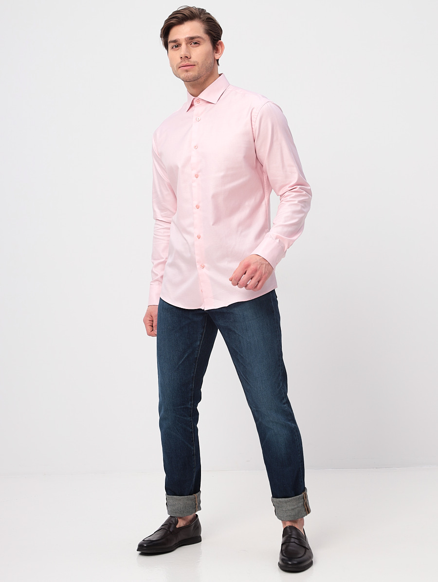 Цвет: Розовый Рисунок: В мелкие э..показатьлементы Состав: 100% хлопок Non Iron Модель: Зауженная Ворот: Французский маленький Караман: отсутствует Манжет: универсальный закругленный на пуговицах и под запонки Силуэт: Полуприталенный силуэт / Regular fitлементы