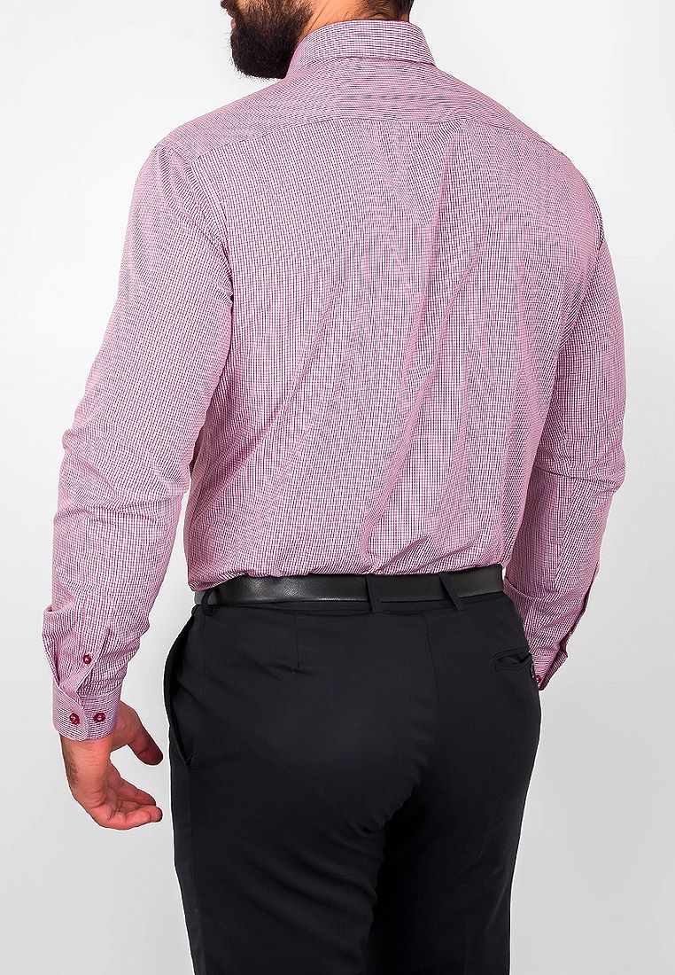 Цвет: Бордовый Рисунок: Клетка..показатьi> Состав: 90% хлопок 10% полиэстер Модель: Зауженная Ворот: Французский маленький Караман: отсутствует Манжет: классический закругленный на пуговицах 6 см Силуэт: Полуприталенный силуэт / Regular fiti>