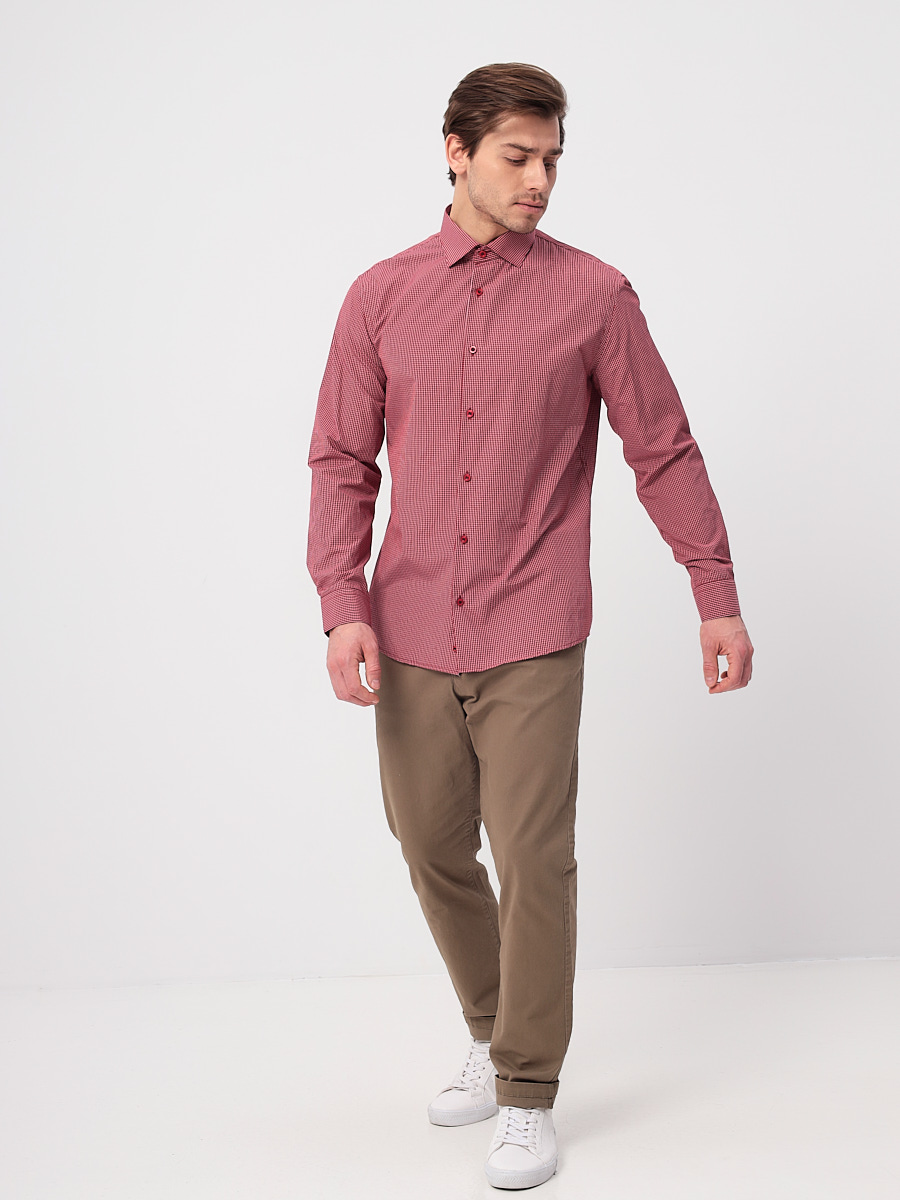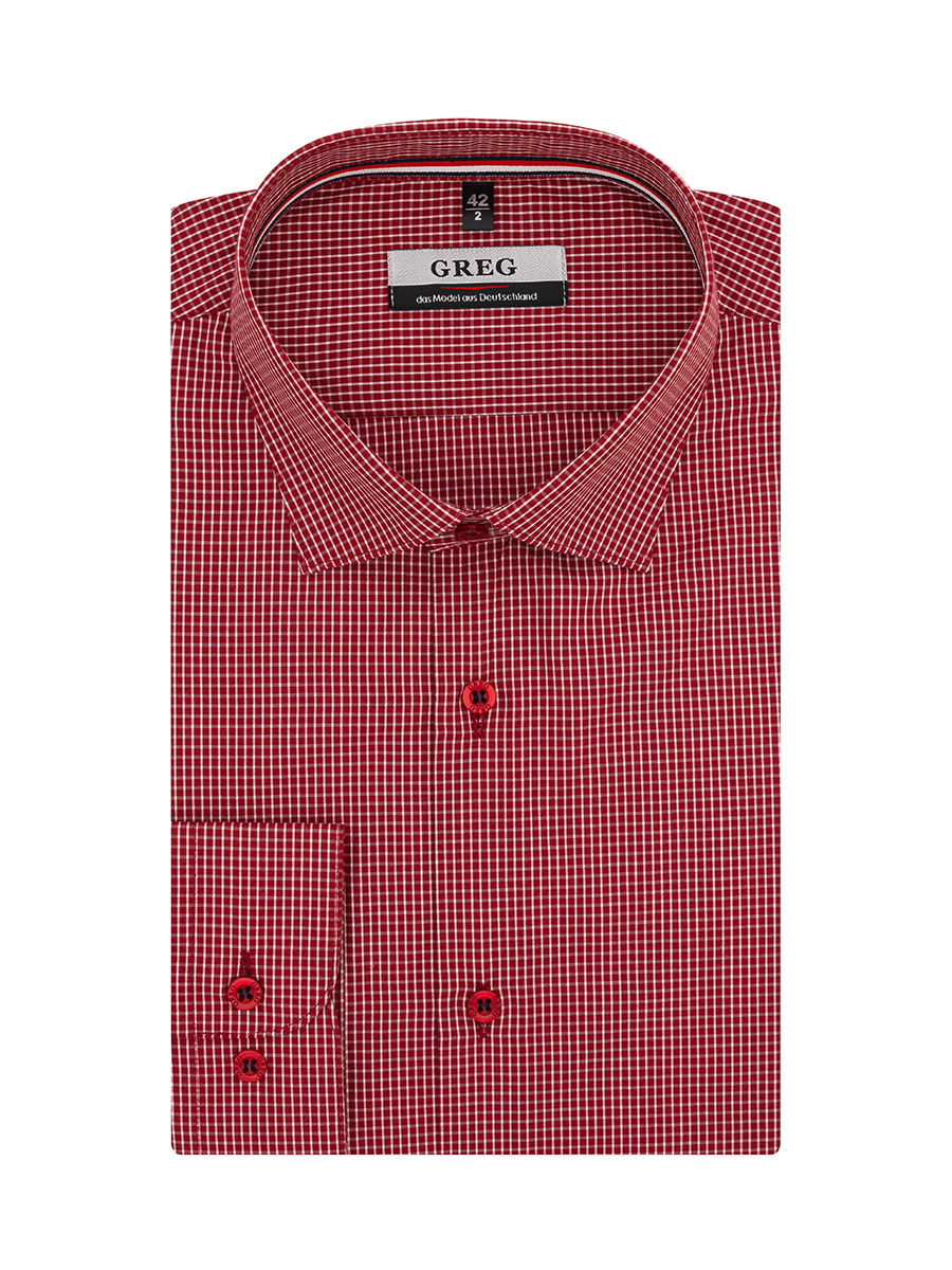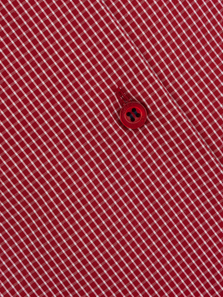 Цвет: Красный Рисунок: Клетка..показать> Состав: 90% хлопок 10% полиэстер Модель: Прилегающая Ворот: Французский маленький Караман: отсутствует Манжет: классический закругленный на пуговицах 6 см Силуэт: Прилегающий силуэт / Super Slim fit Отделка: Сорочки- тесьма по нижнему краю внутренней стойки воротника>