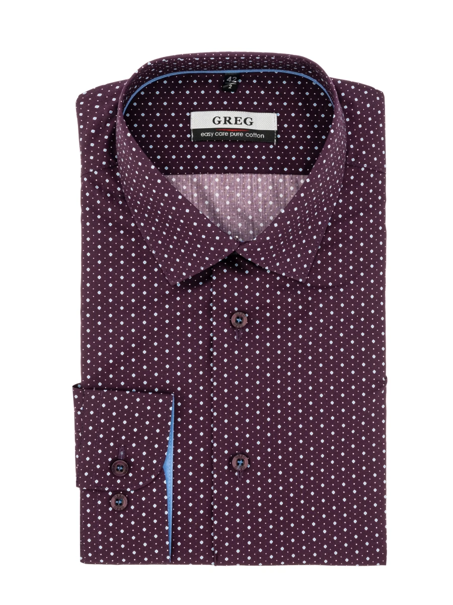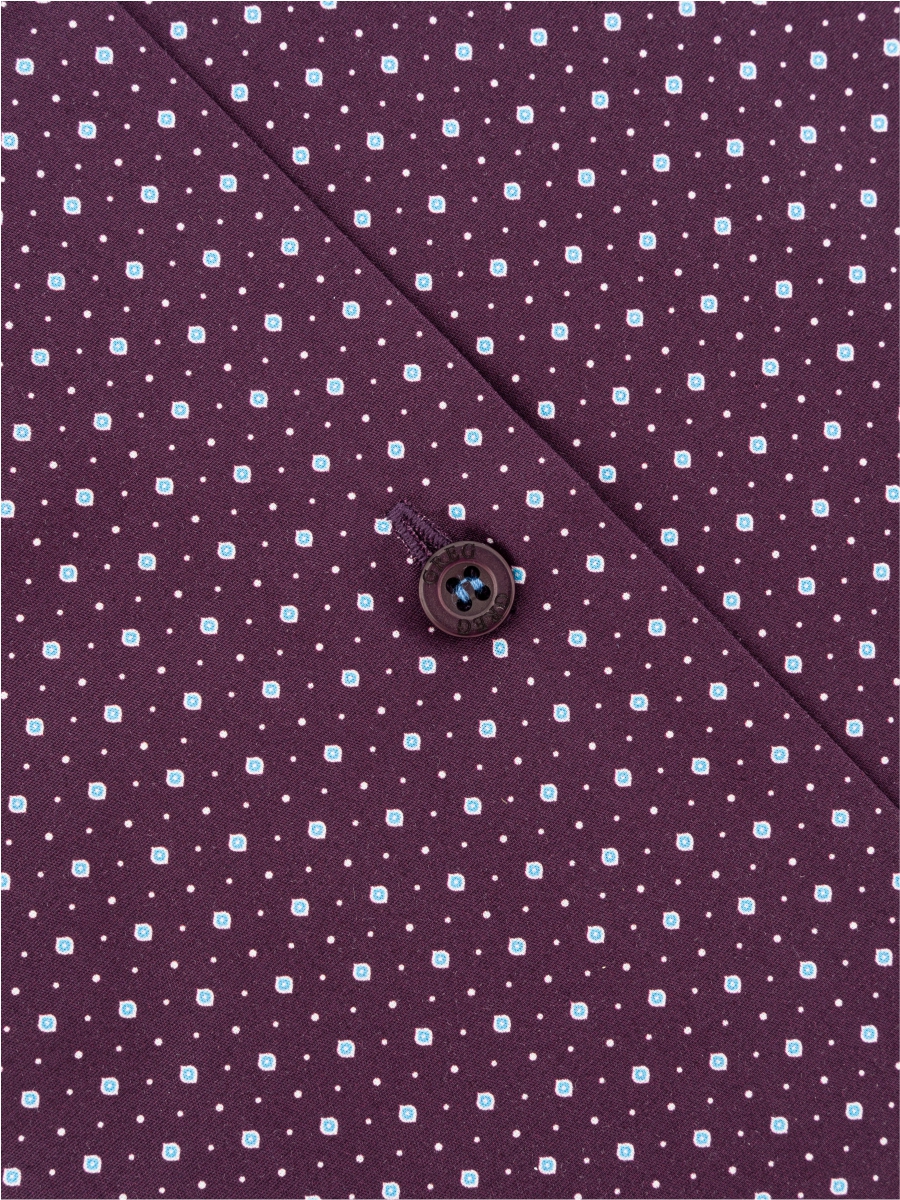 Цвет: Бордовый Рисунок: В мелкие ..показатьэлементы Состав: 100% хлопок Easy Care Модель: Зауженная Ворот: Немецкий Караман: отсутствует Манжет: классический закругленный на пуговицах 6 см Силуэт: Полуприталенный силуэт / Regular fit Отделка: Сорочки- кант по нижнему краю внутренней стойки воротника и внутренний манжет из ткани компаньонаэлементы
