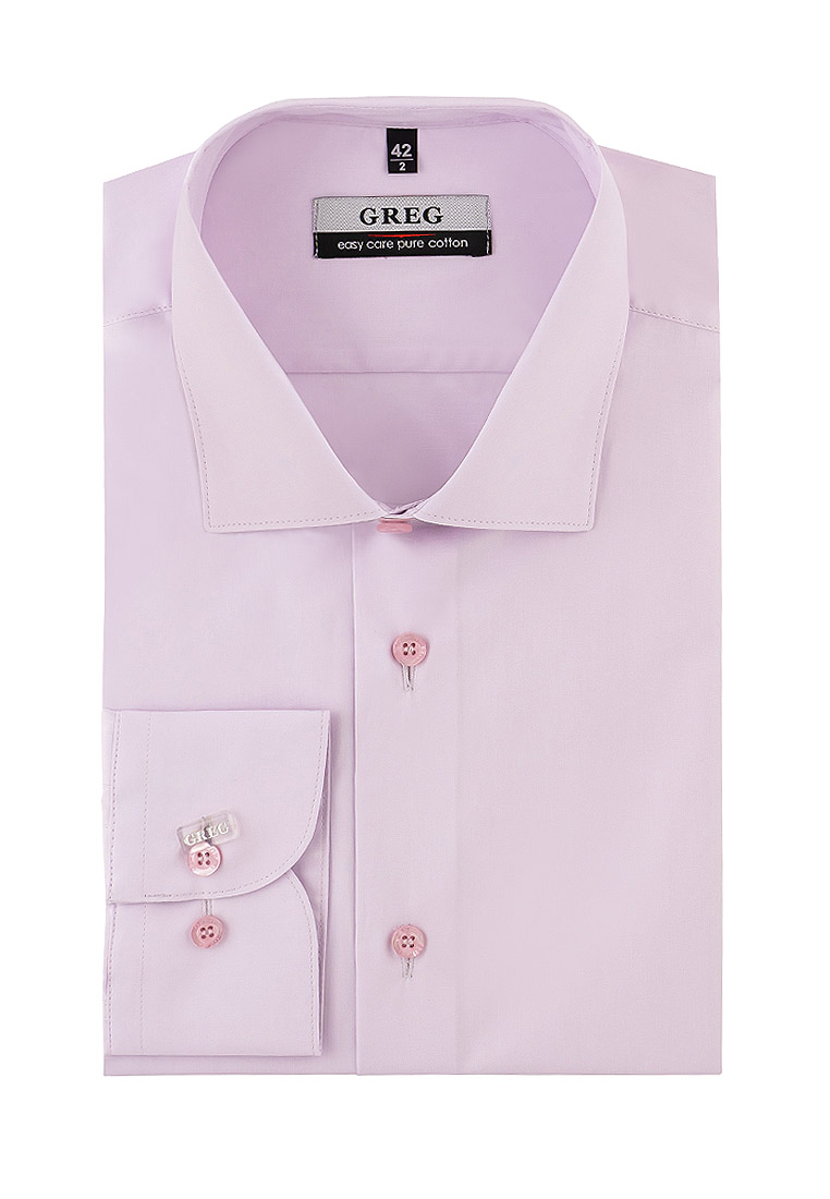 Цвет: Сиреневый Рисунок: Без рису..показатьнка Состав: 100% хлопок Easy Care Модель: Зауженная Ворот: Французский маленький Караман: отсутствует Манжет: универсальный закругленный на пуговицах и под запонки Силуэт: Полуприталенный силуэт / Regular fitнка