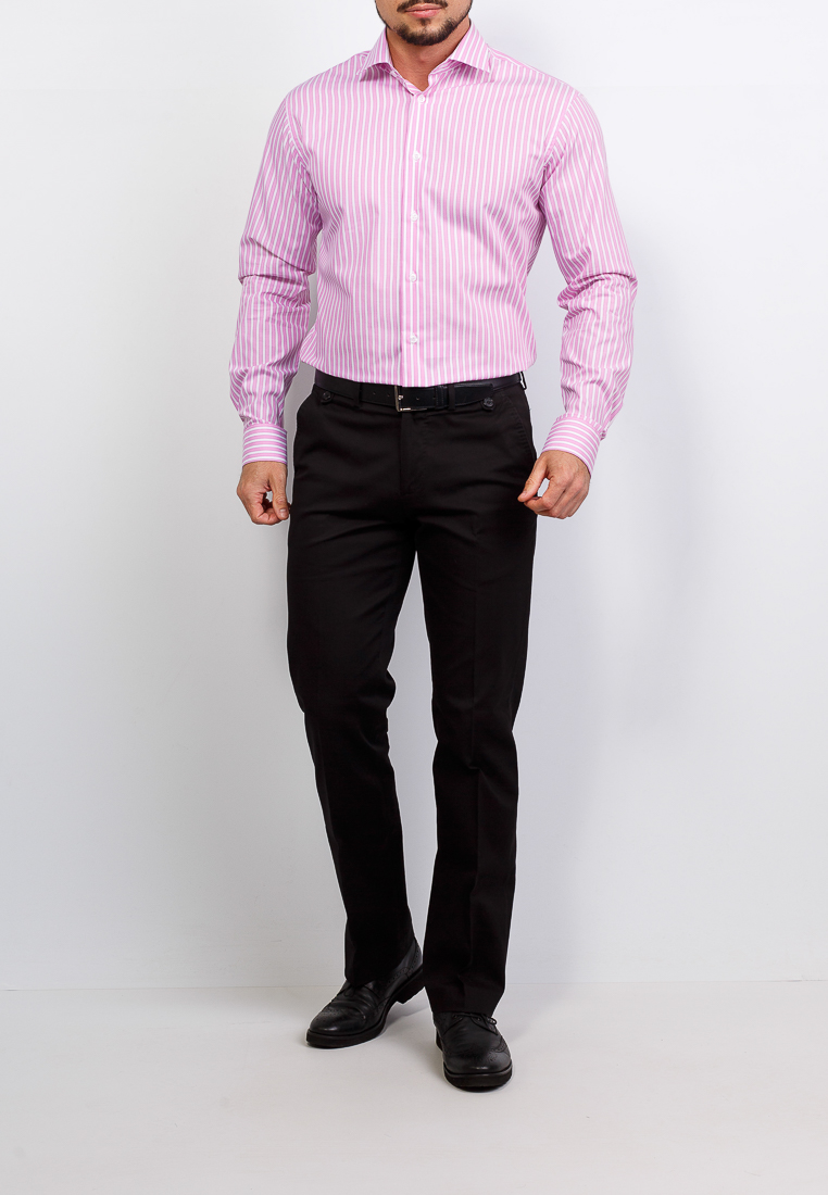Цвет: Розовый Рисунок: Полоска..показатьi> Состав: 100% хлопок Модель: Зауженная Ворот: Французский Караман: отсутствует Манжет: классический закругленный на пуговицах Силуэт: Полуприталенный силуэт / Regular fiti>