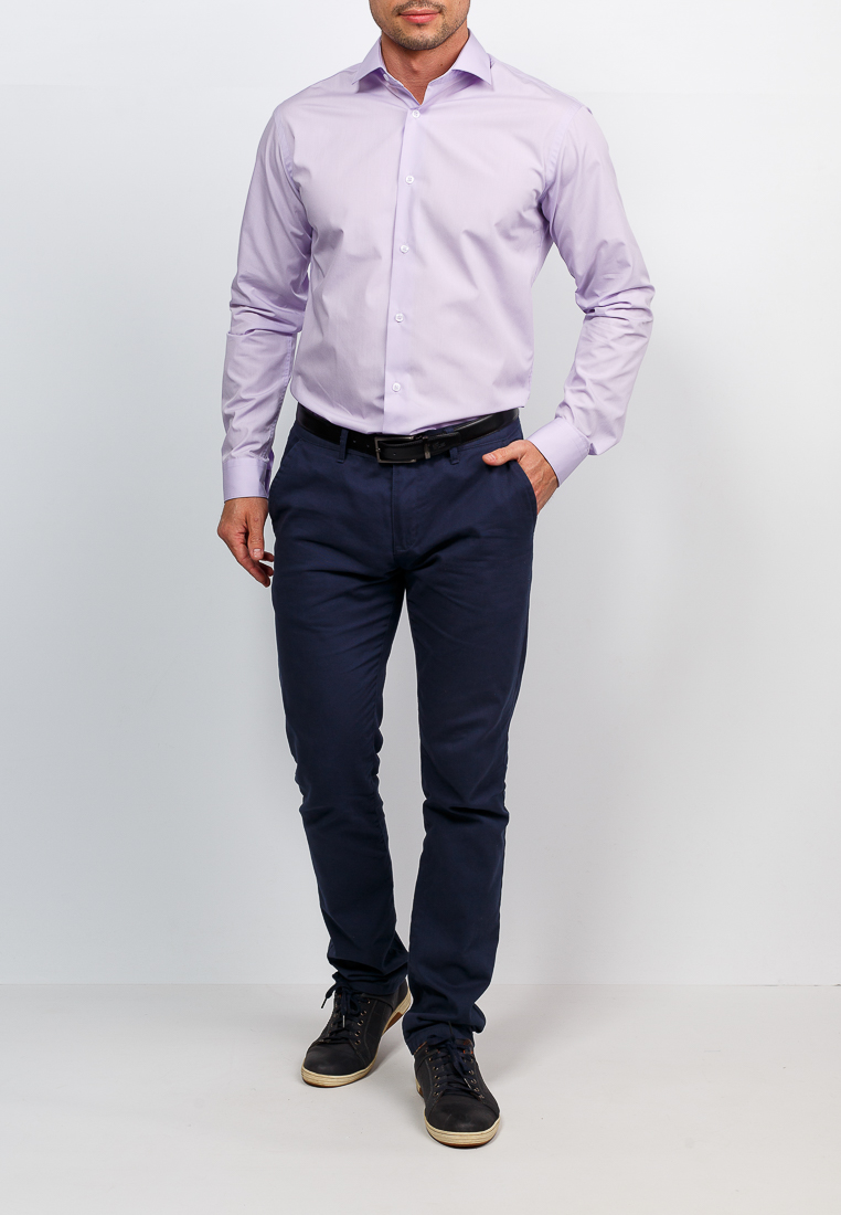 Цвет: Сиреневый Рисунок: Без рису..показатьнка Состав: 90% хлопок 10% полиэстер Модель: Зауженная Ворот: Французский маленький Караман: отсутствует Манжет: классический закругленный на пуговицах 6 см Силуэт: Полуприталенный силуэт / Regular fitbc735041-3d43-11e3-8b14-c80aa904729b