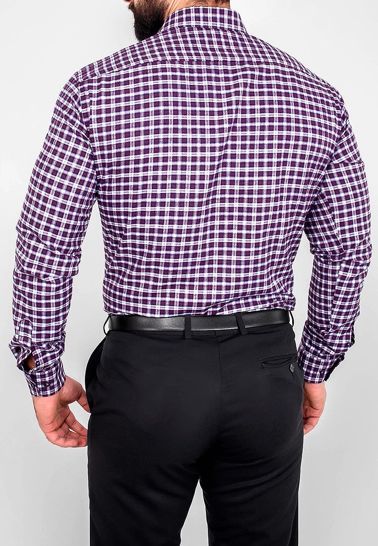 Цвет: Фиолетовый Рисунок: Клетка<..показать/li> Состав: 90% хлопок 10% полиэстер Модель: Зауженная Ворот: Французский маленький Караман: отсутствует Манжет: классический закругленный на пуговицах 6 см Силуэт: Полуприталенный силуэт / Regular fit Отделка: Сорочки- внутренняя стойка воротника и внутренний манжет из ткани компаньона/li>