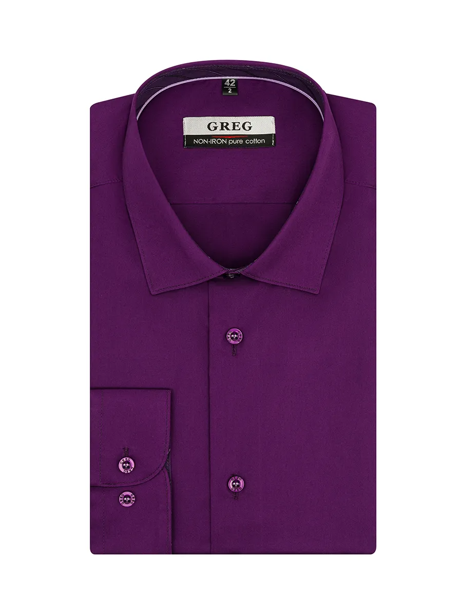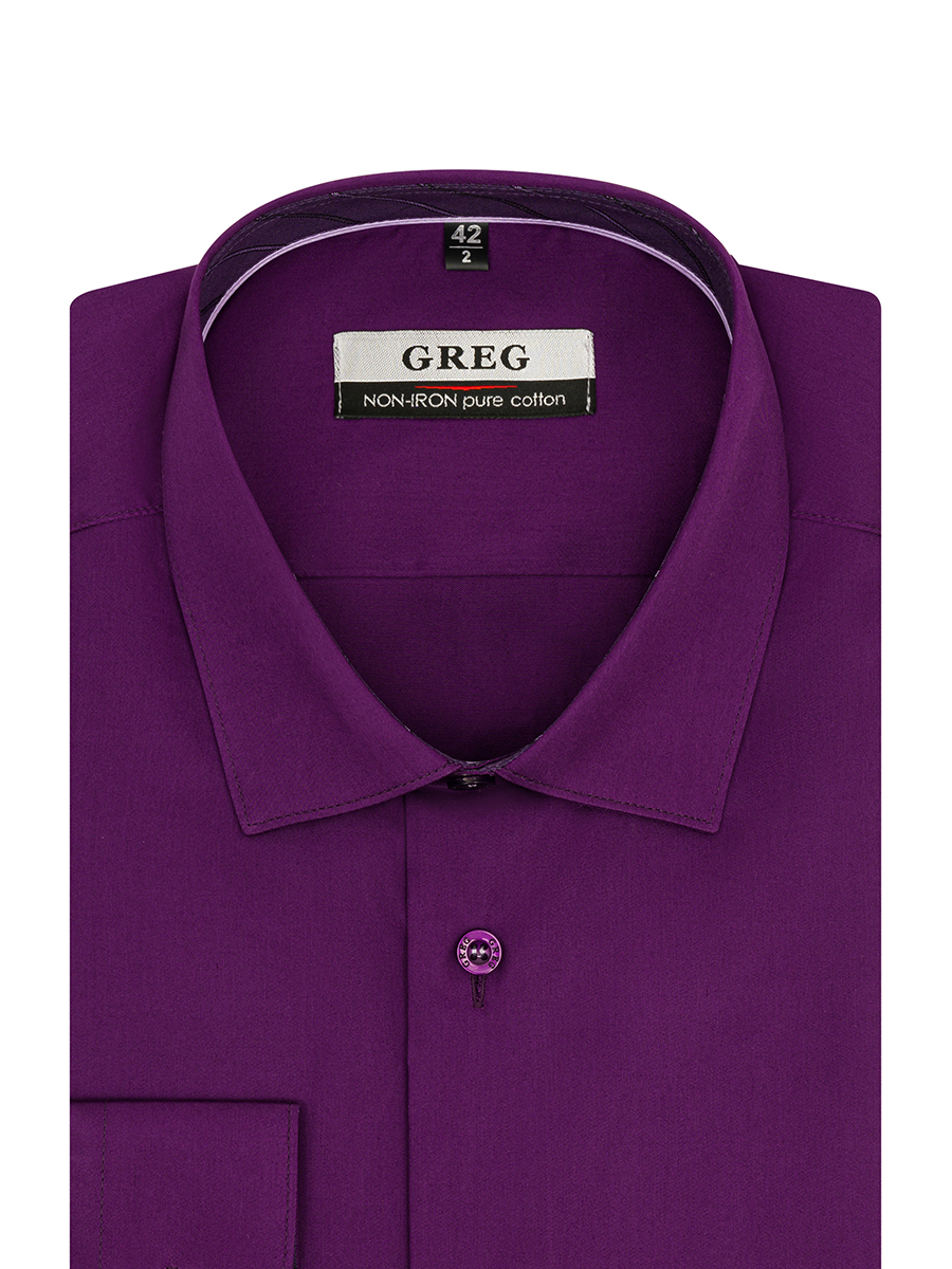 Цвет: Фиолетовый Рисунок: Без рис..показатьунка Состав: 100% хлопок Non Iron Модель: Зауженная Ворот: Немецкий Караман: отсутствует Манжет: классический закругленный на пуговицах 6 см Отделка: Сорочки- внутренняя стойка воротника и внутренний манжет из ткани компаньона по косойунка