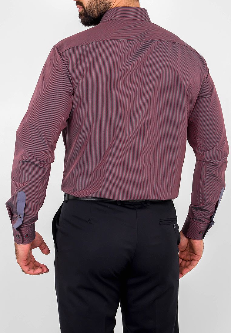 Цвет: Фиолетовый Рисунок: Полоска..показать Состав: 90% хлопок 10% полиэстер Модель: Зауженная Ворот: Французский маленький Караман: отсутствует Манжет: классический закругленный на пуговицах 6 см Силуэт: Полуприталенный силуэт / Regular fit Отделка: Сорочки- стойка воротника, внутренний манжет и внешняя шлица рукава из ткани компаньона