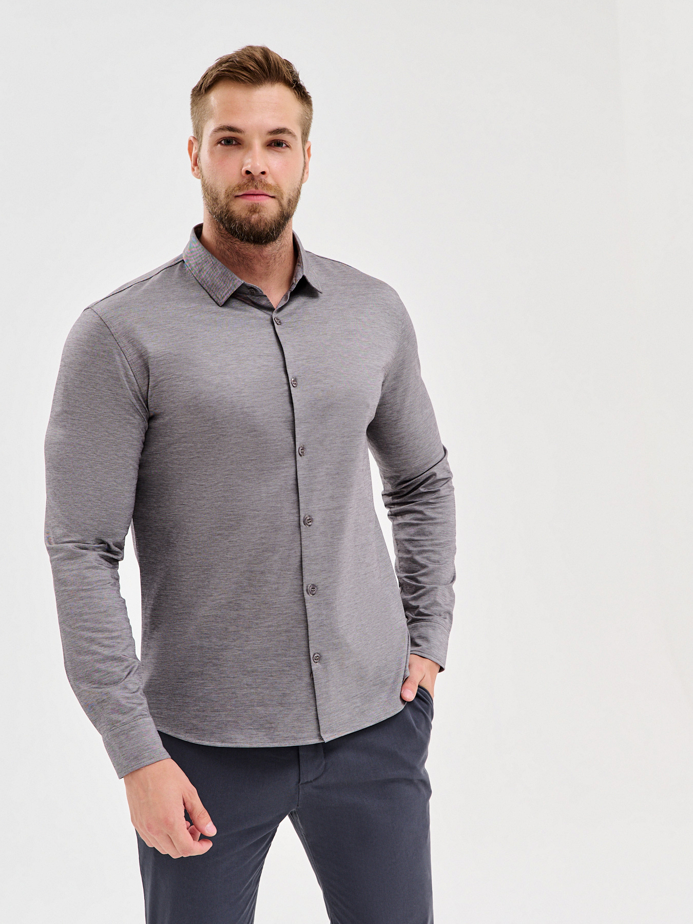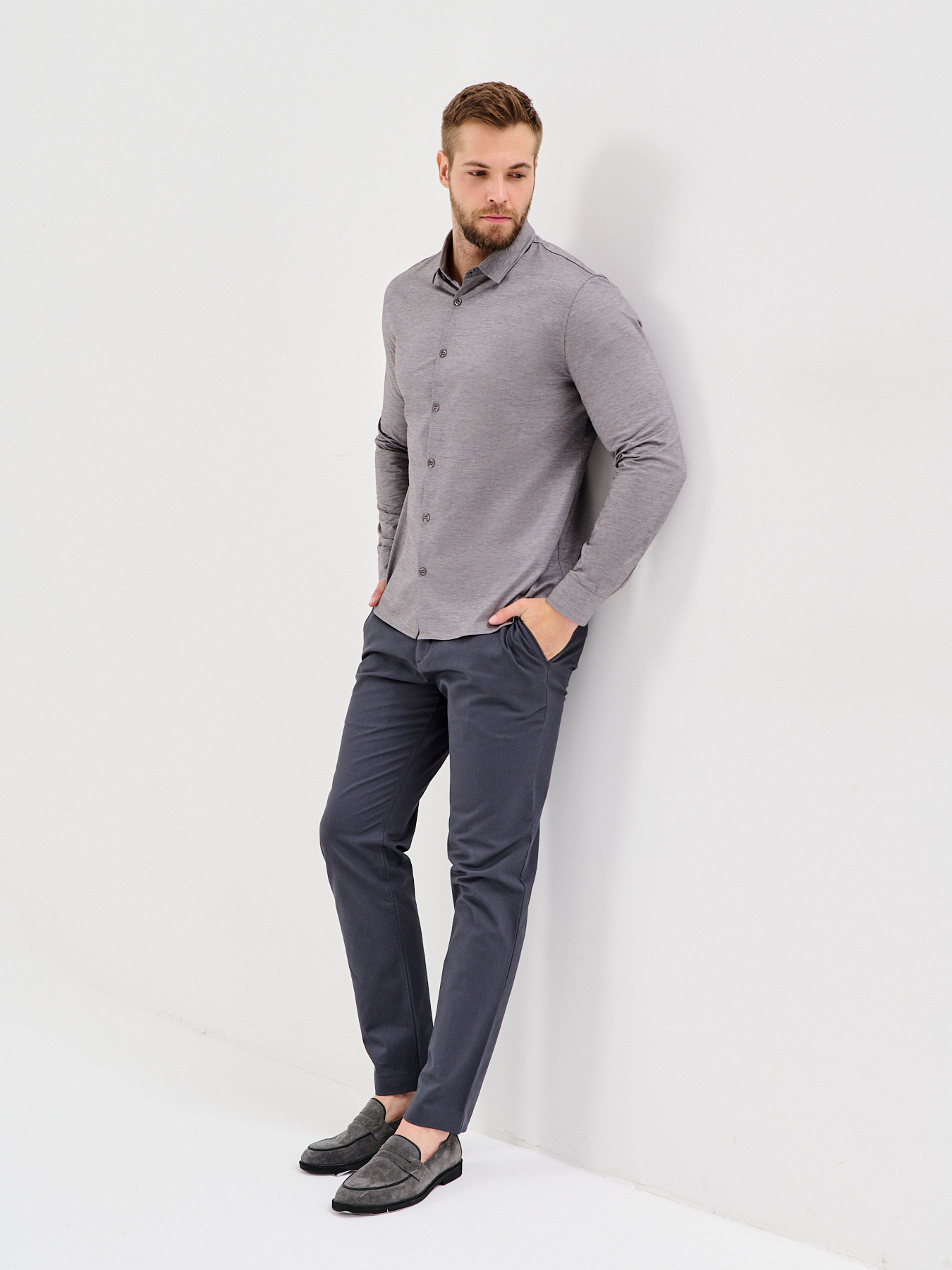 Цвет: Серый Рисунок: Без рисунка<..показать/li> Состав: 100% хлопок Модель: Прилегающая Ворот: Немецкий мягкий Караман: отсутствует Манжет: классический с двумя срезами на пуговицах 6 см Силуэт: Прилегающий силуэт / Casual Slim fit/li>