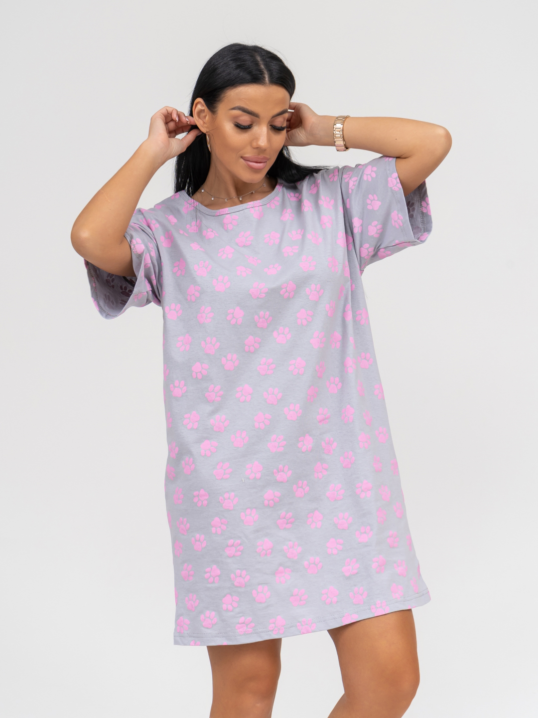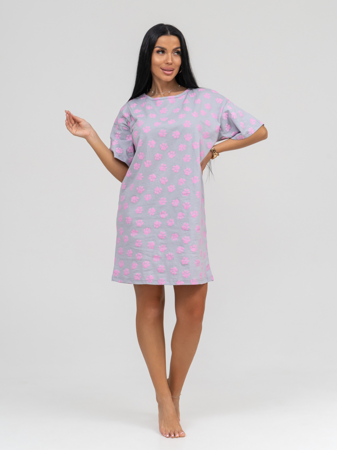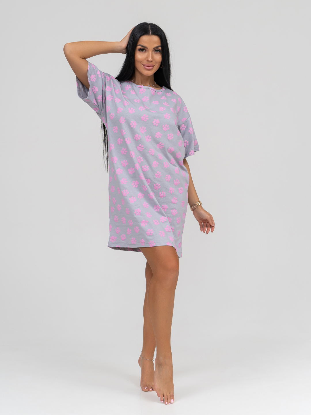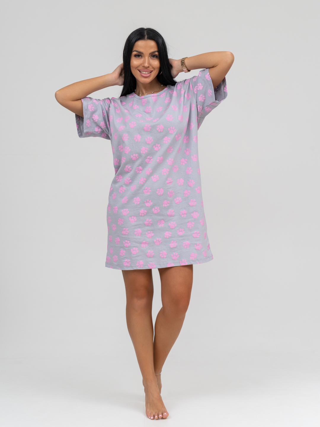 Сорочка женская свободного покроя со спущенным плечом, втачным рукавом до линии локтя. Горловина круглой формы.