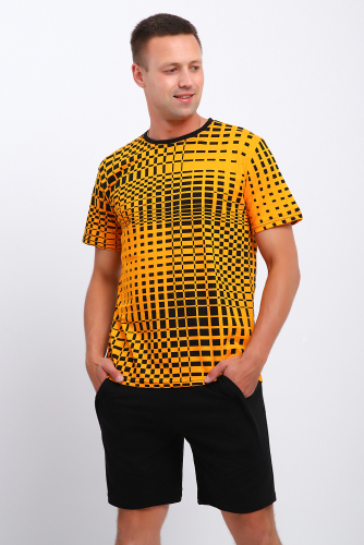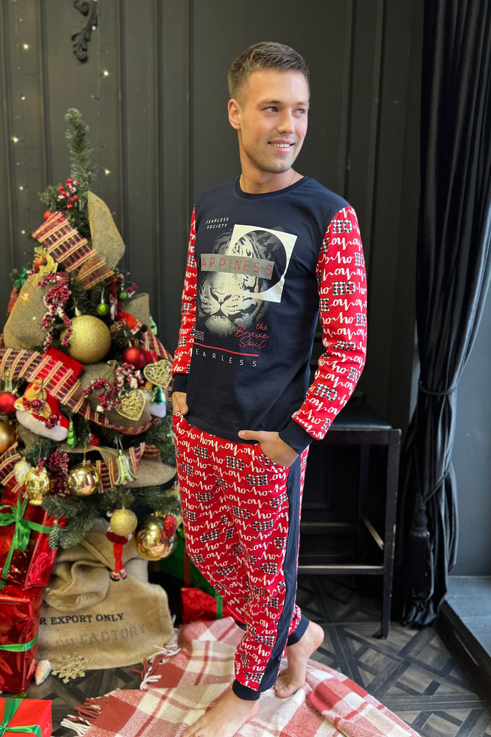Пижама мужская свободного силуэта состоит из кофты и брюк. На полочке принт. Брюки на манжете. В боковых швах карманы. Цвет: лошадь+красно-синяя клетка; Материал: кулирка;кулирка; Состав: хлопок 100%.