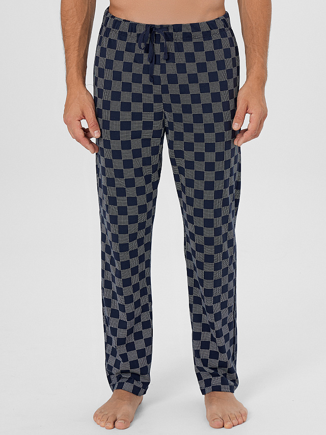 Мужские домашние брюки в крупную клетку — это сочетание практичного стиля и повседневного комфорта. Прямой силуэт и эластичный пояс на кулиске обеспечивают идеальную посадку и свободу движений, позволяя легко регулировать посадку под фигуру.