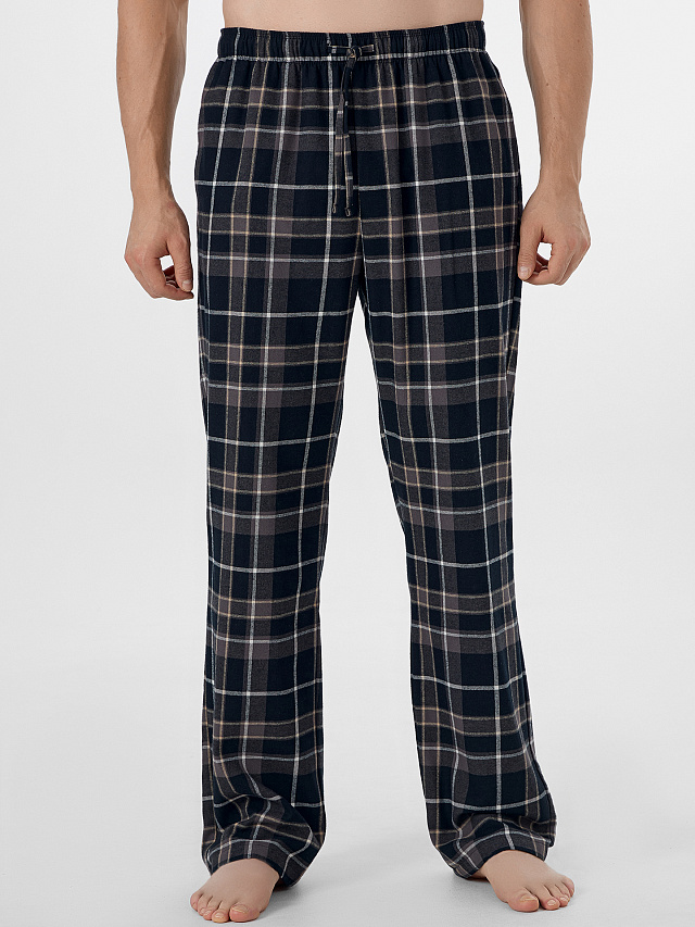Свободный крой гарантирует полную свободу движений во время домашних дел, отдыха или сна. Классический клетчатый принт легко сочетается с любой домашней футболкой, делая эти брюки универсальным решением для расслабленных вечеров.