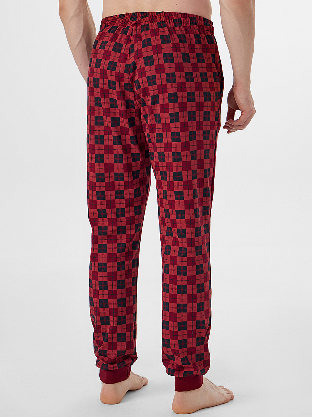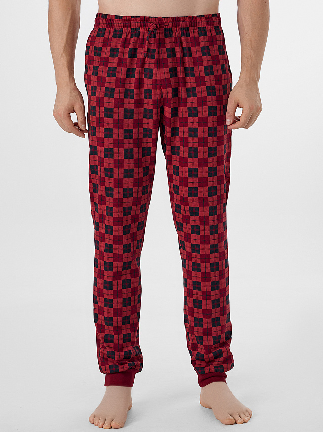 Красные домашние брюки в клетку сочетают в себе уют и мужской стиль. Модель из мягкой кулирной глади прямого силуэта обеспечивает комфорт во время отдыха. Классическая линия талии с эластичным поясом и декоративным шнуром позволяет регулировать посадку.