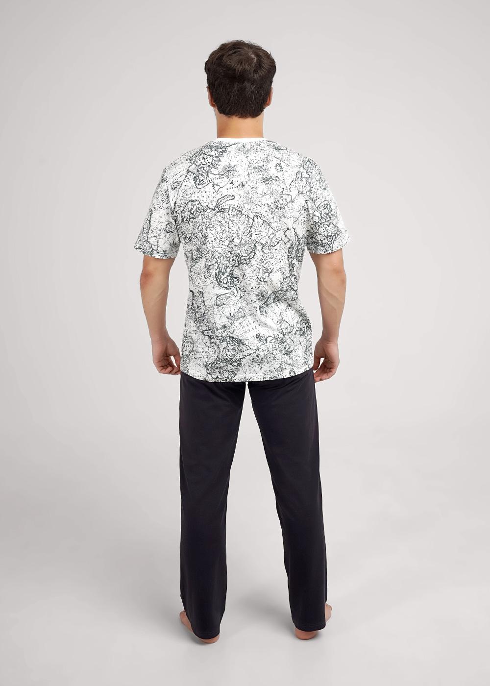 Описание: Комплект мужской состоящий из футболки и брюк. Футболка из трикотажного полотна в набивку с коротким рукавом и дизайнерской нашивкой. Брюки из футера на широком поясе с резинкой и регулируемым шнуром, по бокам удобные карманы.