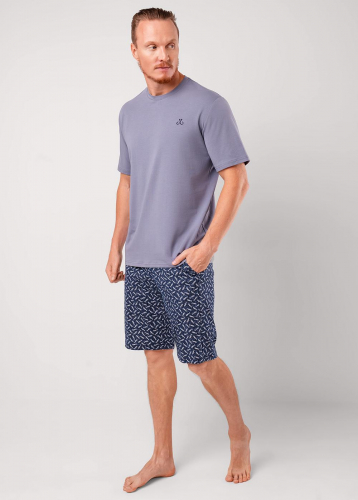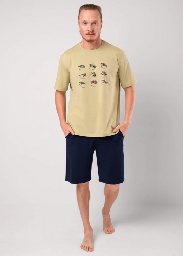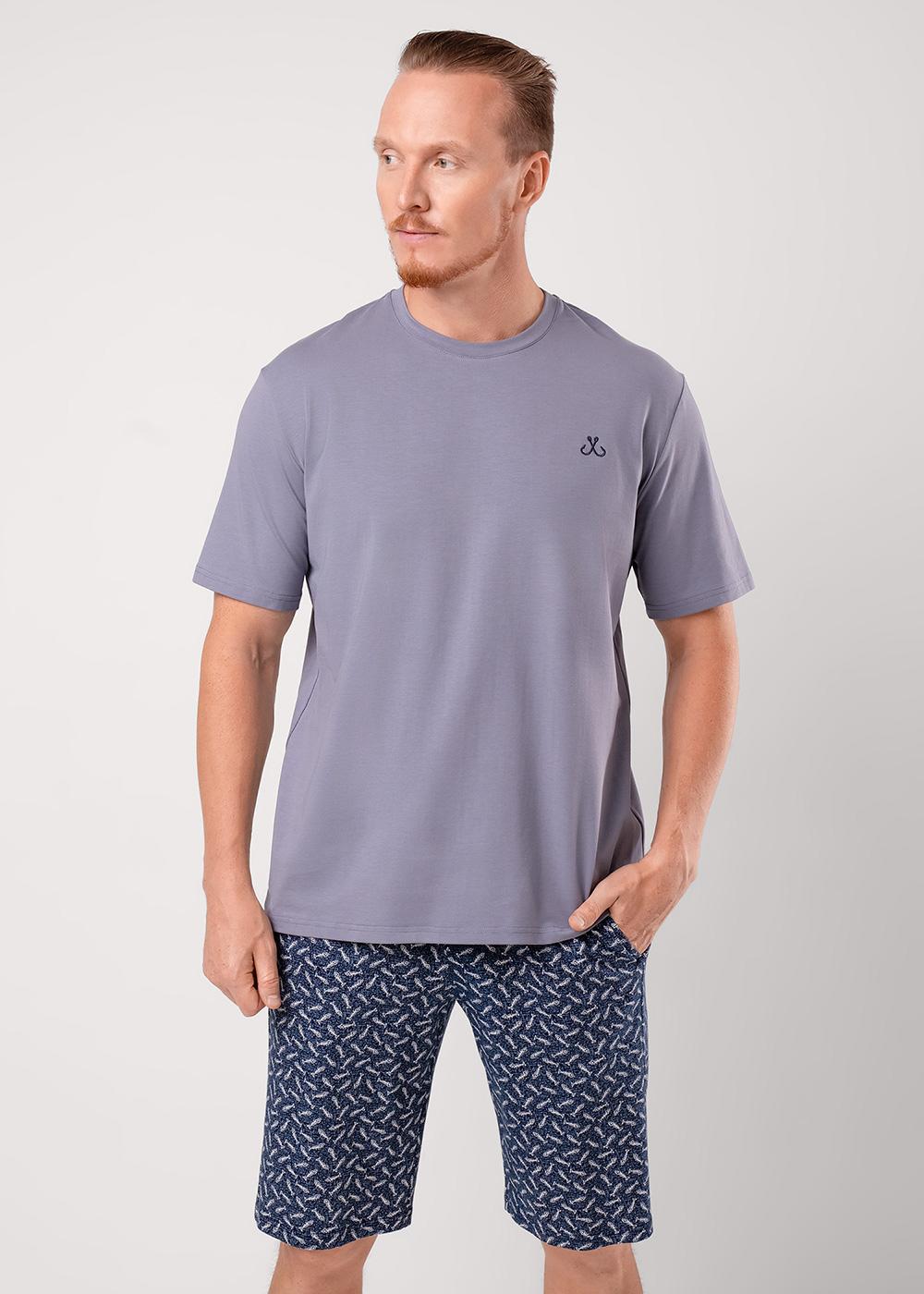 Описание: Набор мужской для дома состоящий из футболки и шорт. Футболка из хлопковой кулирной глади с эластаном с круглым вырезом горловины, коротким рукавом и вышивкой. Шорты из набивной кулирной глади на эластичном поясе с функциональными карманами и шнуром.