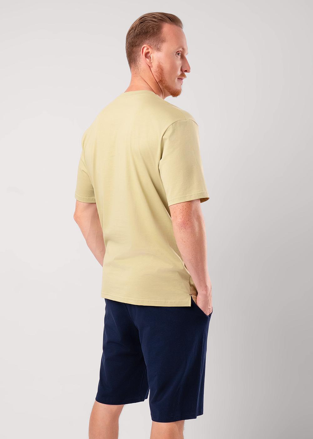 Описание: Набор мужской для дома состоящий из футболки и шорт. Футболка из хлопковой кулирной глади с круглым вырезом горловины, коротким рукавом и принтом. Шорты из плотной кулирной глади с эластаном на эластичном поясе с функциональными карманами и шнуром.