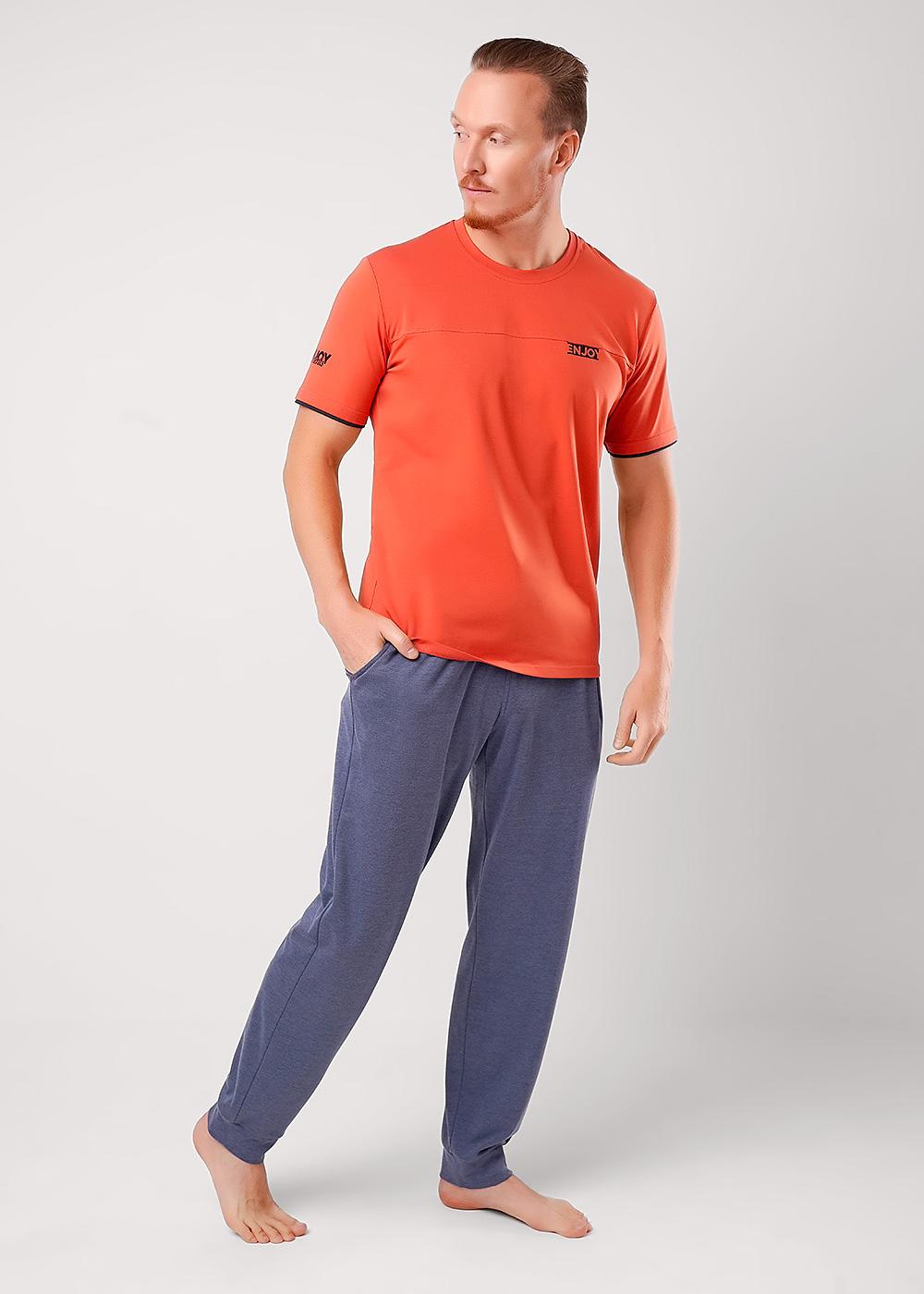 Описание: Набор мужской состоящий из футболки и брюк. Футболка из хлопковой кулирной глади с добавлением эластана с коротким рукавом и минималистичным принтом. Брюки из фактурного полотна -пике, на широком поясе с резинкой и шнуром, по бокам удобные карманы.