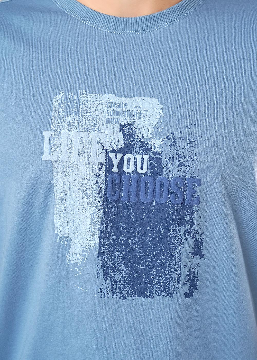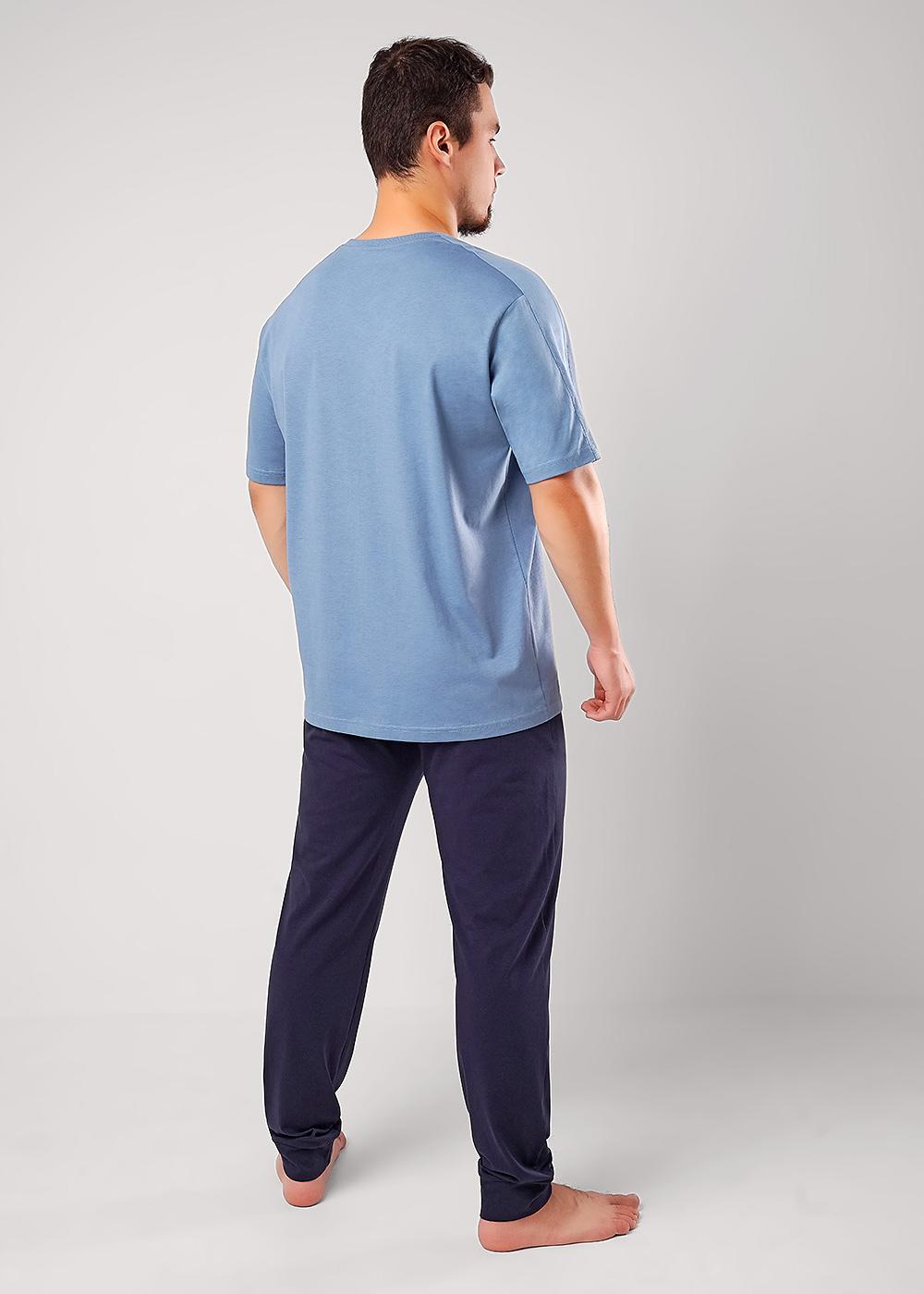 "Описание: Набор состоящий из футболки и брюк. Футболка из хлопковой кулирной глади с декоративными резами с коротким рукавом и принтом. Брюки из плотной хлопковой кулирной глади с добавлением эластана на широком поясе с резинкой и шнуром, по бокам карманы.