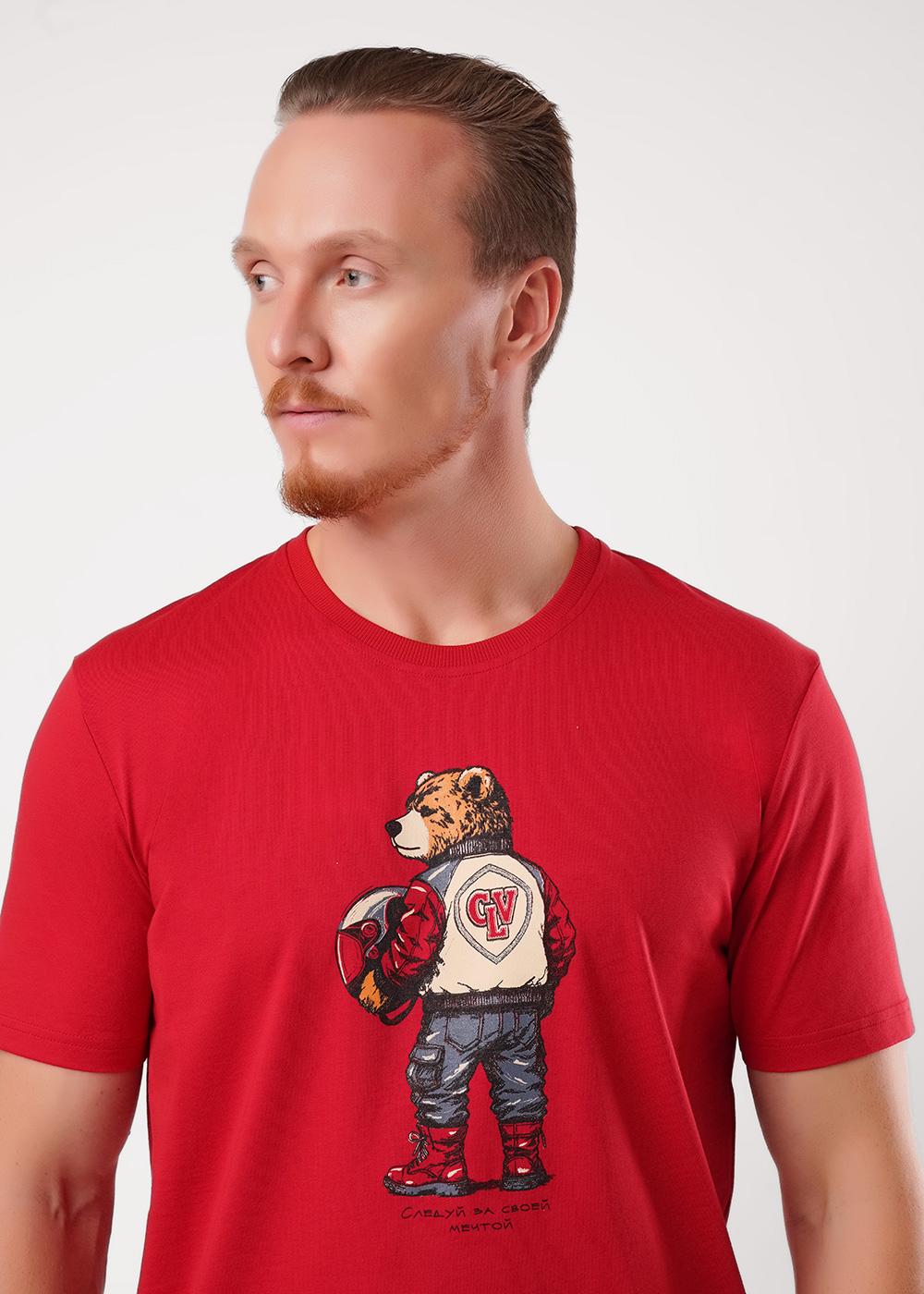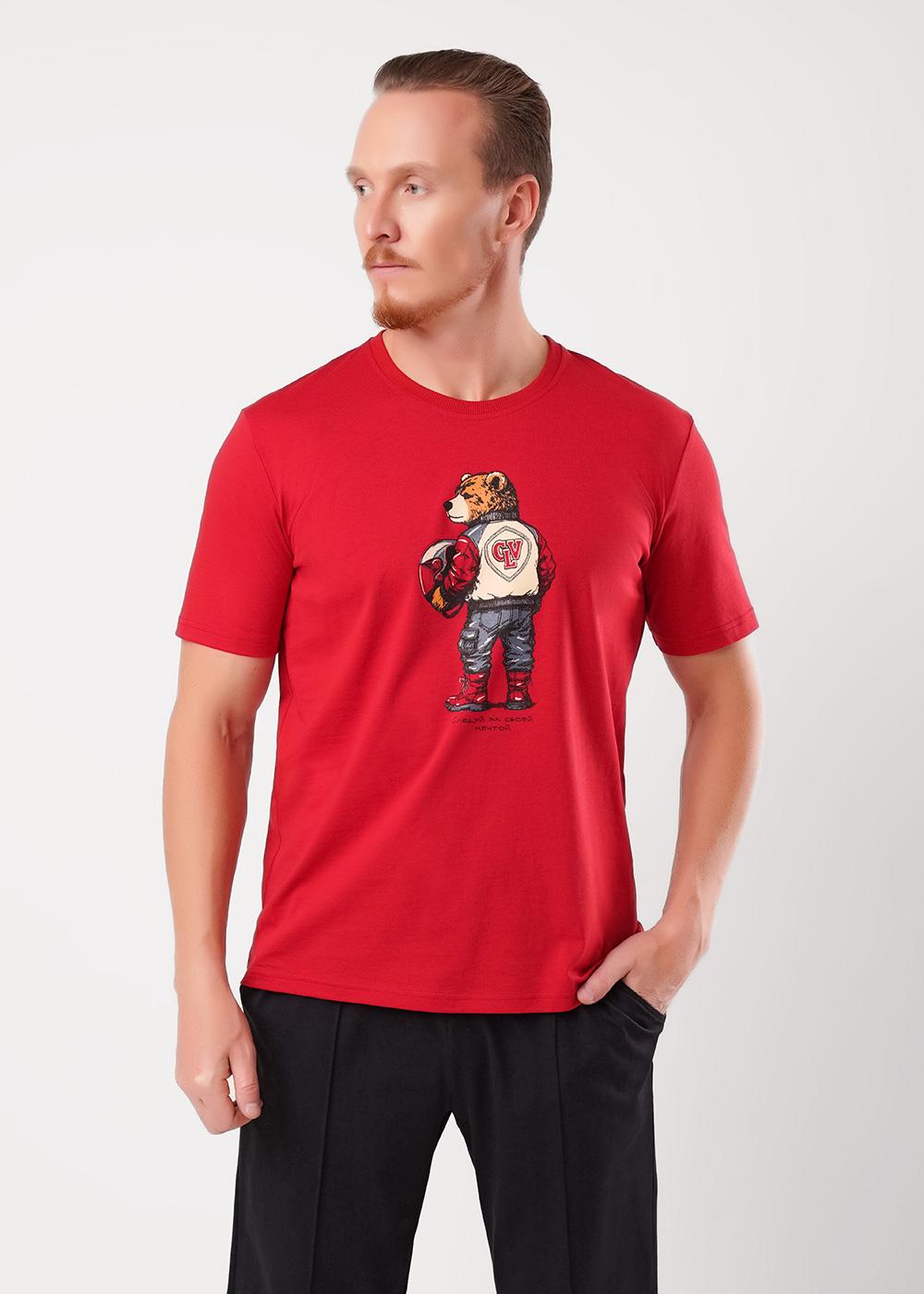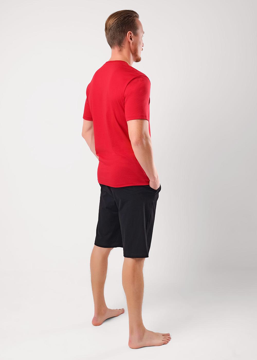 "Описание: Набор мужской, состоящий из футболки и шорт. Футболка из хлопковой кулирной глади с округлой горловиной, коротким рукавом и дизайнерским принтом. Шорты из плотной кулирной глади с эластаном на эластичном поясе с функциональными карманами и шнуром.