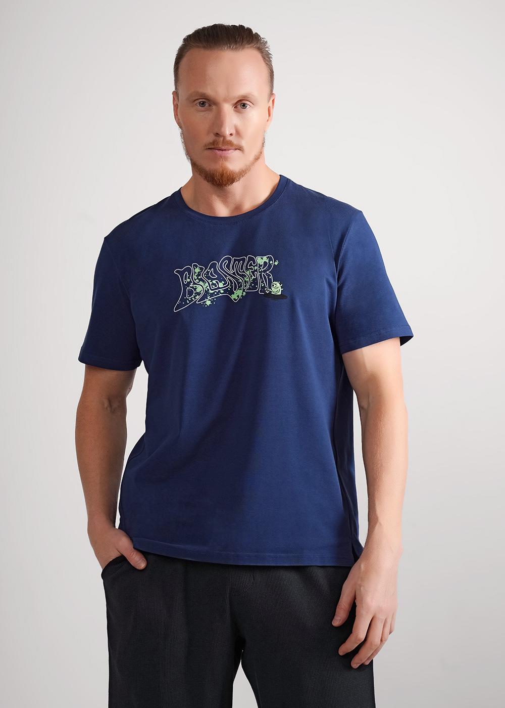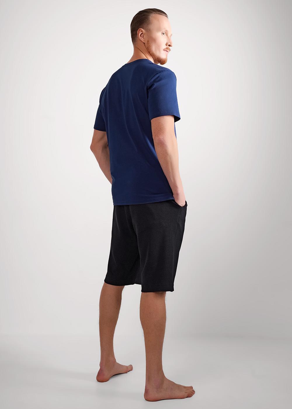 Описание: Набор мужской состоящий из футболки и шорт. Футболка из кулирной глади с эластаном, с коротким рукавом, декоративными резами и принтом. Шорты из фактурного полотна - вафля на широком поясе с резинкой и шнуром, по бокам карманы.