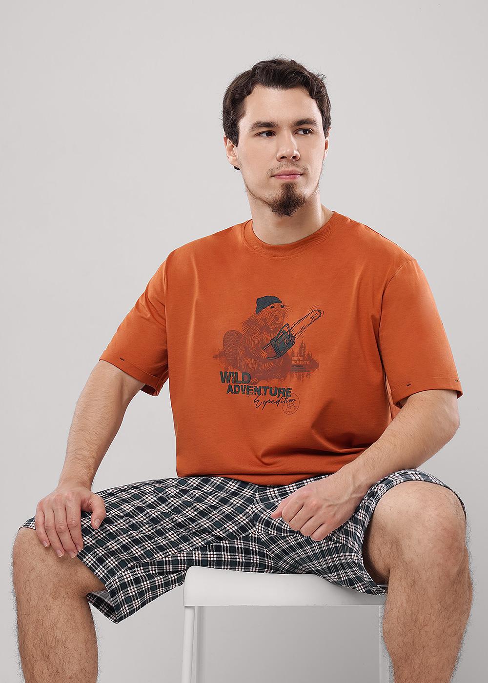 Описание: Набор для дома состоящий из футболки и шорт. Футболка из кулирной глади с дизайнерским принтом . Шорты из кулирной глади в клетку на эластичном поясе с функциональными карманами и шнуром.