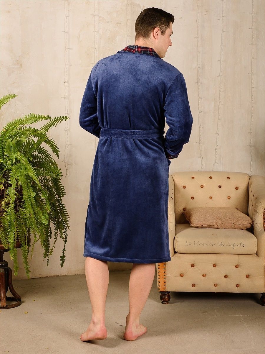 Халат мужской из велсофта Артур темно-синий
