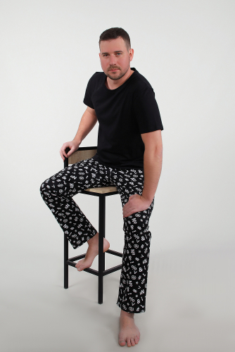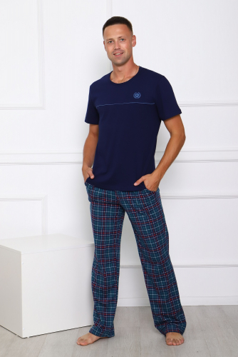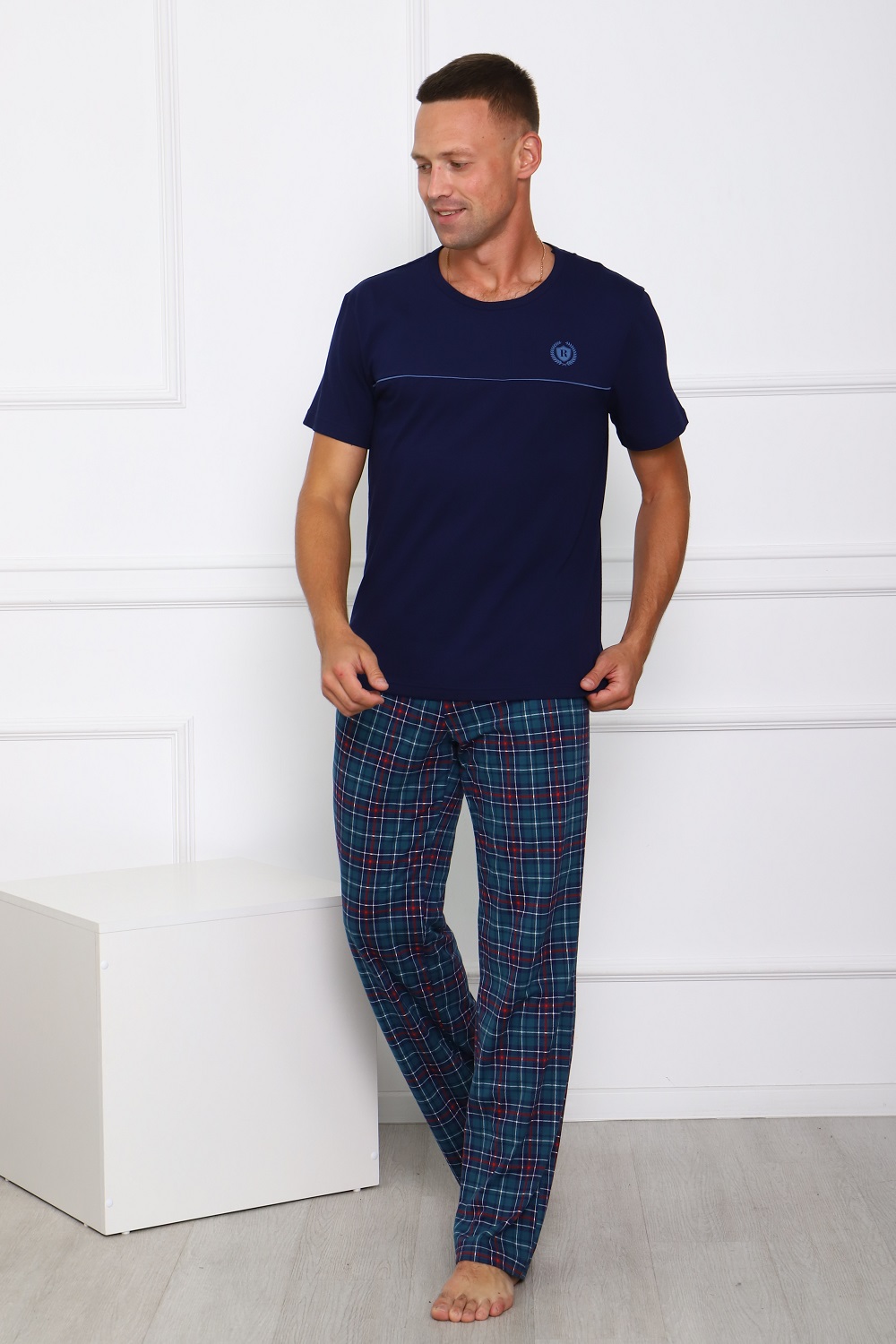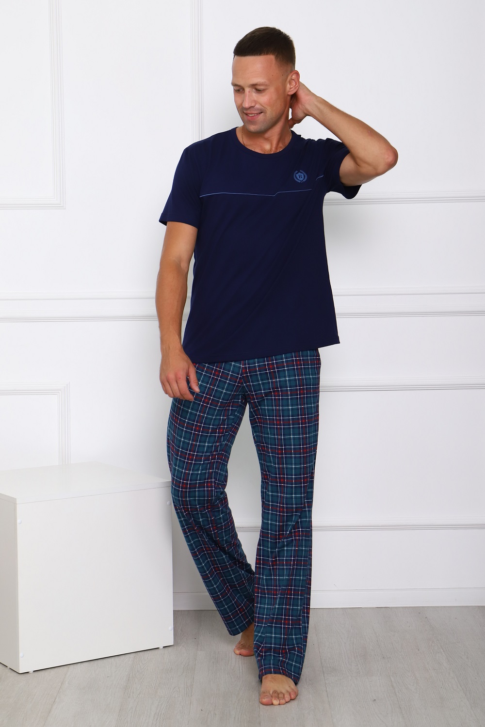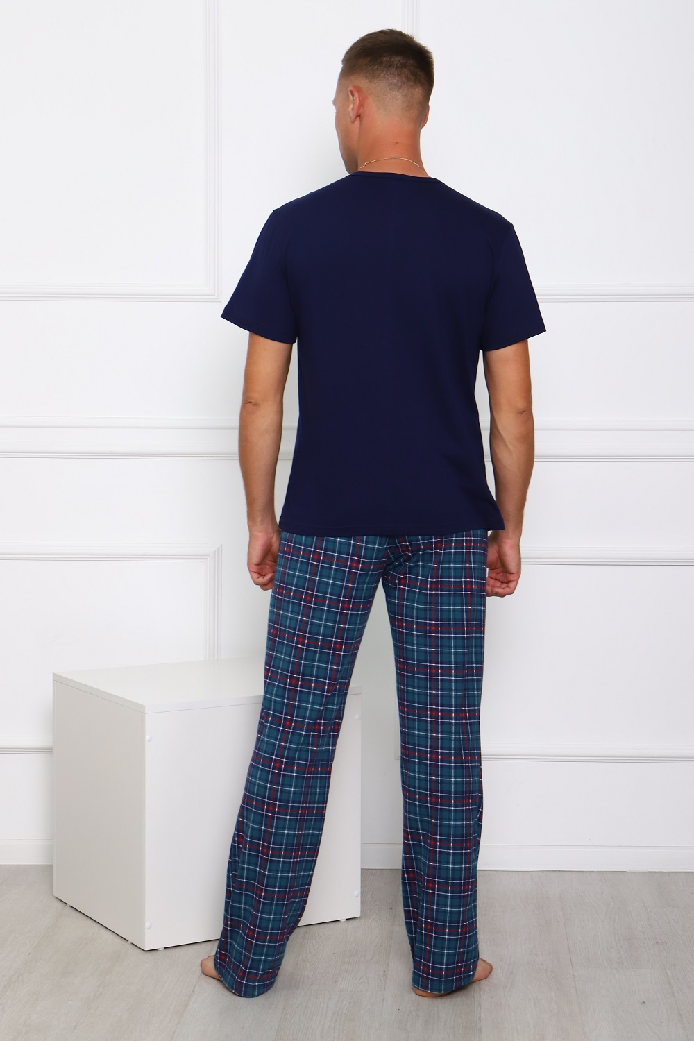 Пижама мужская: футболка прямого кроя с короткими рукавами с принтом на полочке, брюки прямые, с карманами в боковых швах. Цвет: сине-зеленый; Материал: кулирка;кулирка; Состав: хлопок 100%.