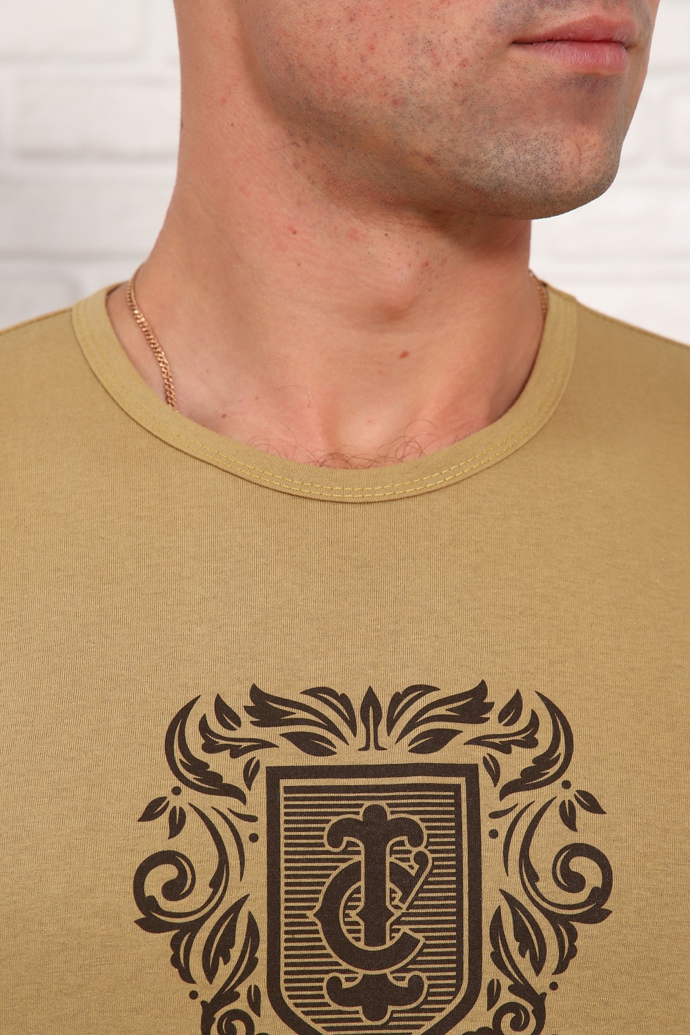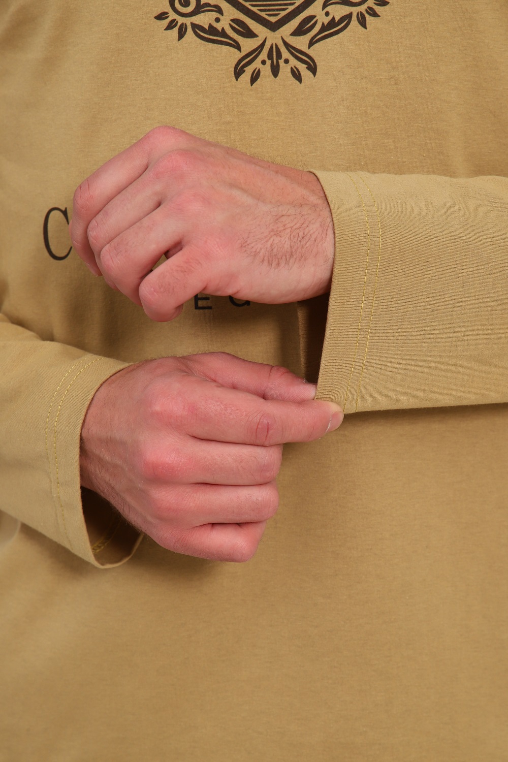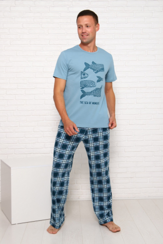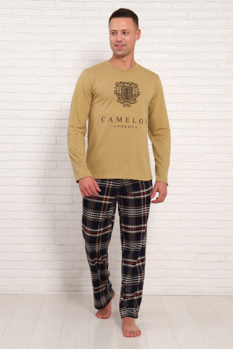 Мужская пижама классического кроя и стиля. Обнотонная футболка с принтом, с длинными рукавами и брюки в клетку, с боковыми карманами и эластичным поясом. Размеры 48-56. Цвет: коричневый; Материал: кулирка;кулирка; Состав: 100% хлопок.