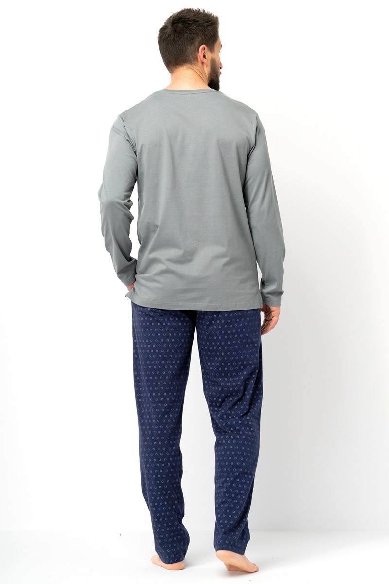 Всесезонная мужская пижама классического кроя. Изготовлено полностью из мягкого, высококачественного хлопкового трикотажа, который обеспечивает комфорт, свободу движений и долговечность. Классический крой верха и низа. Лонгслив с круглым вырезом и мультяшным изображением скачущей лошади. Гладкие брюки слегка зауженного кроя с удобным мягким эластичным поясом и шнурком на талии. Глубокие карманы по бокам. Высококачественные волокна 100% хлопка в сочетании с правильной строчкой и нитками гарантируют исключительную долговечность и позволяют пижаме сохранять форму в течение длительного времени. Мягкий и приятный на ощупь хлопок — идеальный выбор для любого сезона.