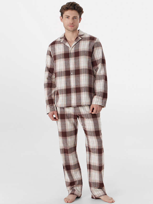 Доминантой дизайна выступает стильная клетка, а тонкое сочетание с полоской придает комплекту особый шарм и визуальную глубину. Мягкая дышащая ткань обеспечивает идеальный микроклимат, делая этот комплект прекрасным выбором для расслабленного вечера или полноценного ночного отдыха в прохладный сезон.