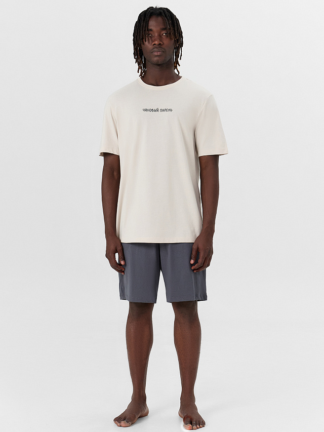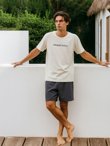 Мужская пижама, состоящая из футболки и шорт, — это практичный и комфортный комплект для сна и отдыха. Футболка выполнена в прямом силуэте с округлой горловиной, обработанной рибаной, что обеспечивает надежность и аккуратный внешний вид. Швы по нижним срезам и рукавам, выполненные в подгибку, сохраняют форму изделия и подчеркивают качество исполнения. Шорты имеют прямой крой, который не сковывает движений, а эластичный пояс обеспечивает удобную посадку и легкость в носке. Нижние срезы также обработаны швом в подгибку, благодаря чему изделие сохраняет опрятность даже после многократных стирок.Комплект выполнен из натурального хлопка — мягкого, дышащего материала, который дарит коже комфорт и свежесть. Такая пижама подойдет для любого времени года и станет незаменимой частью домашнего гардероба.