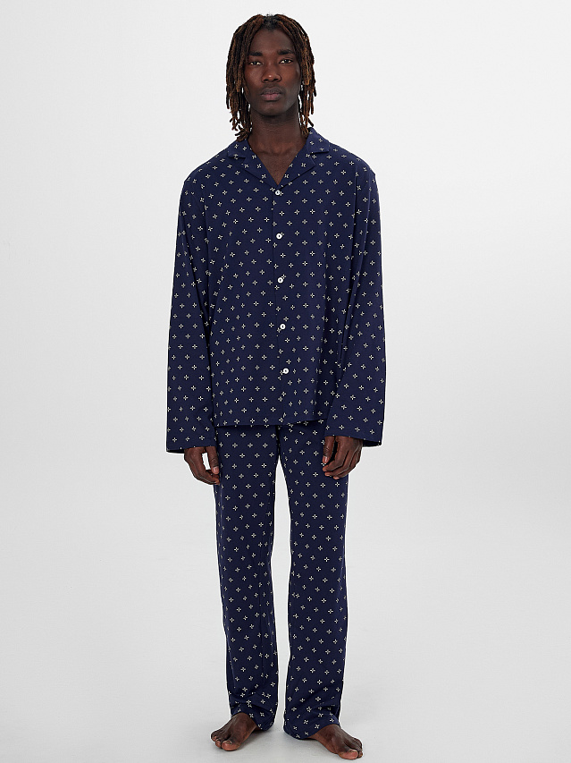 Комплект домашний мужской синий с узором