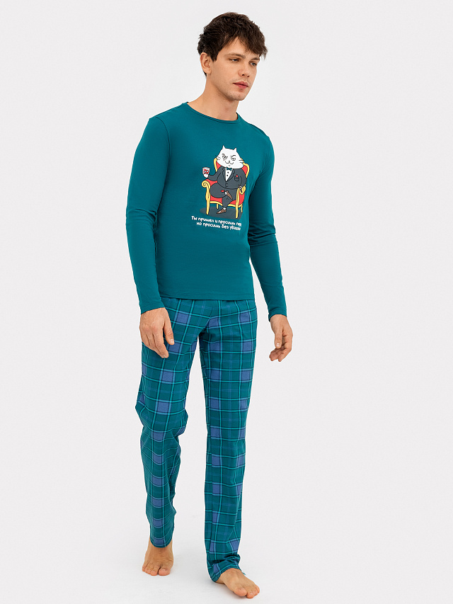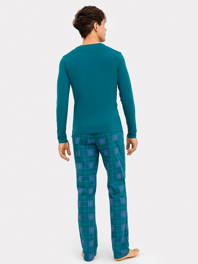 Комплект мужской (джемпер, брюки)темно-зеленый в зеленую клетку