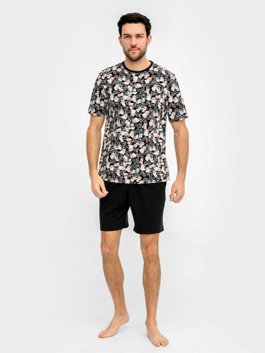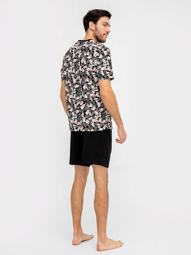Комплект мужской (джемпер, шорты) черный с принтом "Новый год"