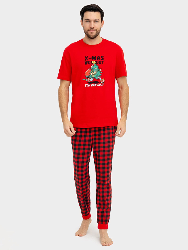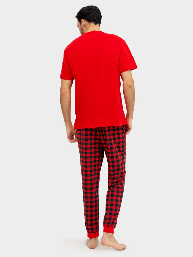 Комплект мужской (футболка, брюки) красный в клетку