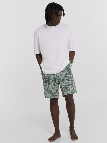 Шорты свободного силуэта. Длиной до колен. Пояс отрезной с эластичной тесьмой внутри.На деталях переда карманы с отрезным бочком. Нижние срезы шорт обработаны швом вподгибку.