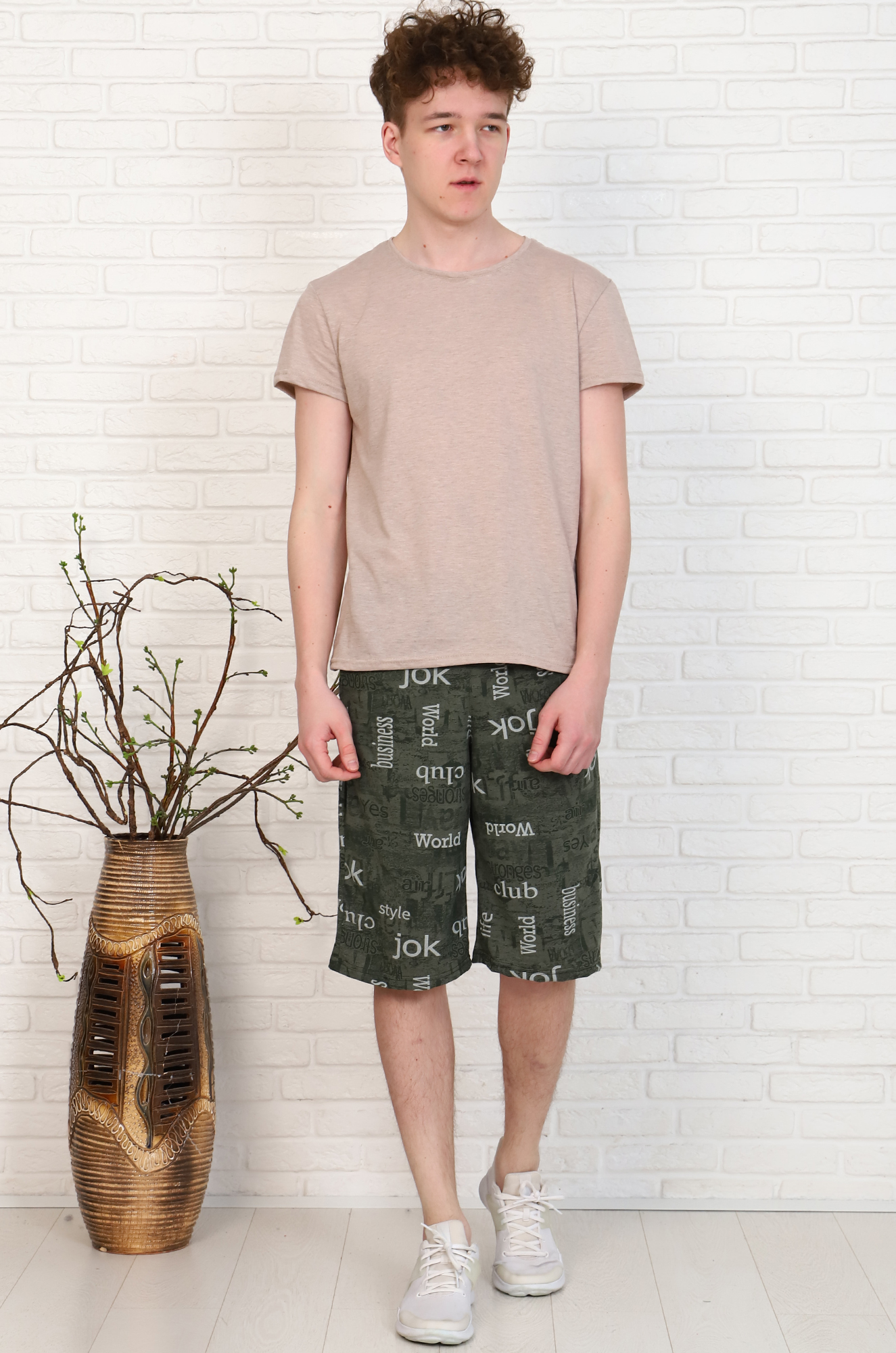 Удобный хлопковый костюм для мужчин, которые хотят выглядеть стильно даже дома! Шорты с набивным рисунком, свободные, комфортной длины с удобными боковыми карманами, пояс на широкой резинке. Футболка однотонная, прямого кроя, с коротким втачным рукавом. Ткань - мягкое и приятное к телу кулирное полотно.