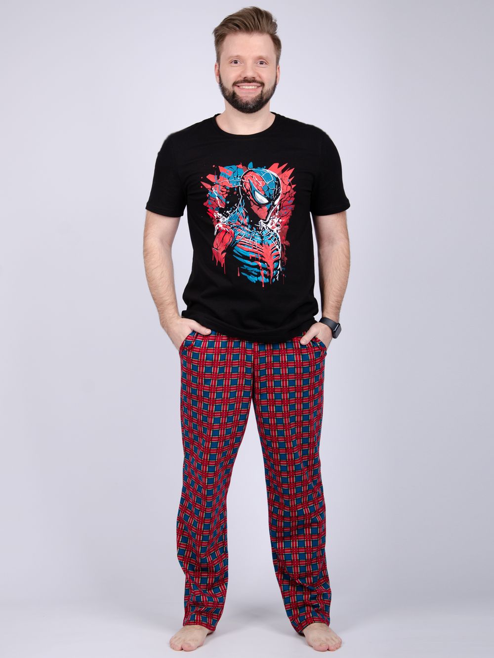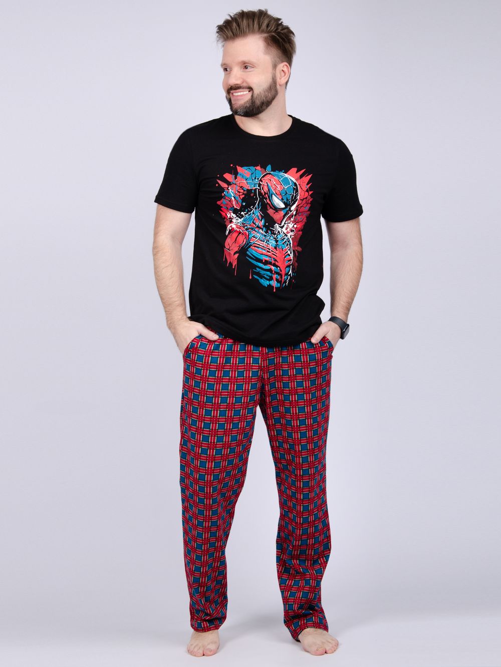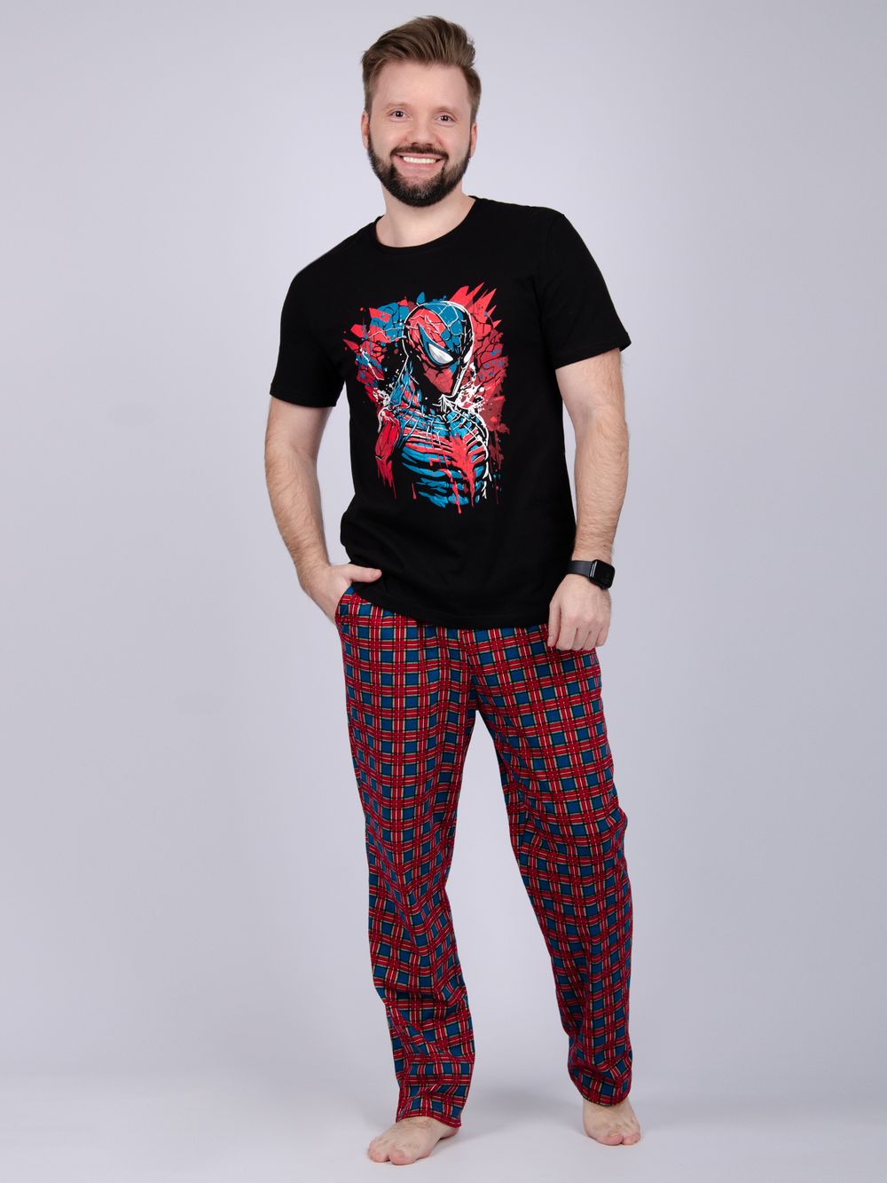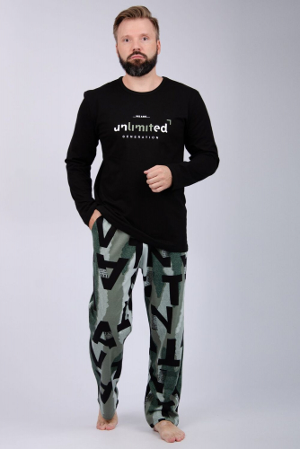 Пижама мужская: футболка прямого кроя с короткими рукавами с принтом на полочке, брюки прямые, с карманами в боковых швах. Цвет: черный; Материал: кулирка;кулирка; Состав: 100% хлопок.