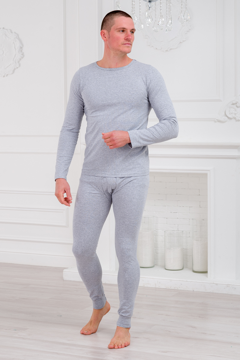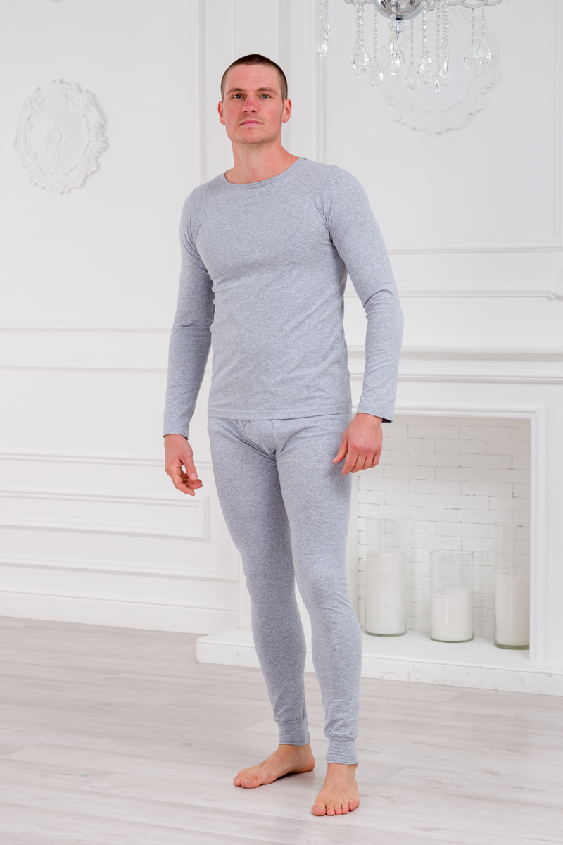 Нательное белье футболка с длиным рукавом и кальсоны кулирка с лайкрой серый меланж
