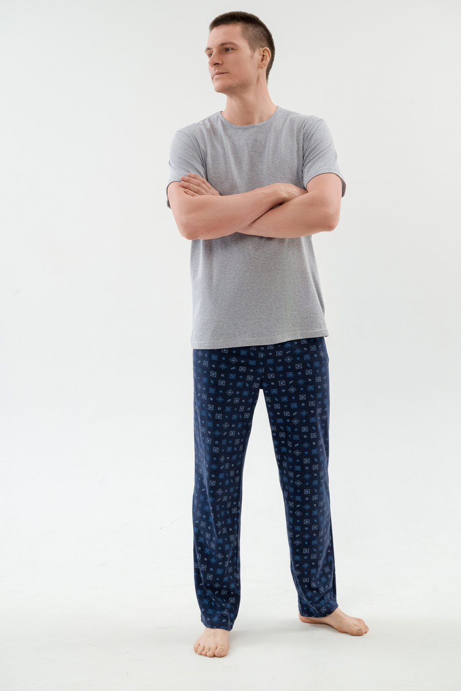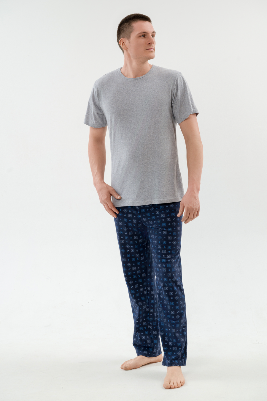 Пижама мужская из футболки с коротким рукавом и брюк из кулирки Генри синий макси