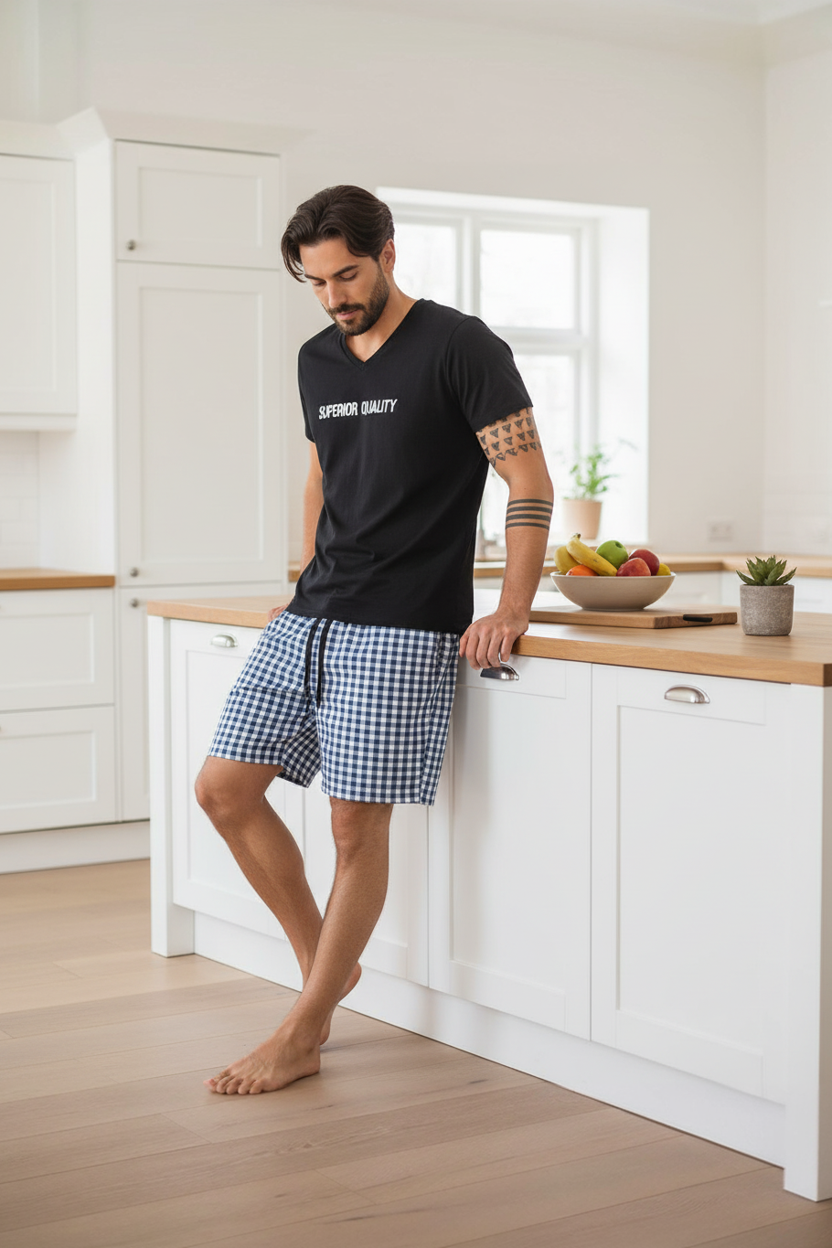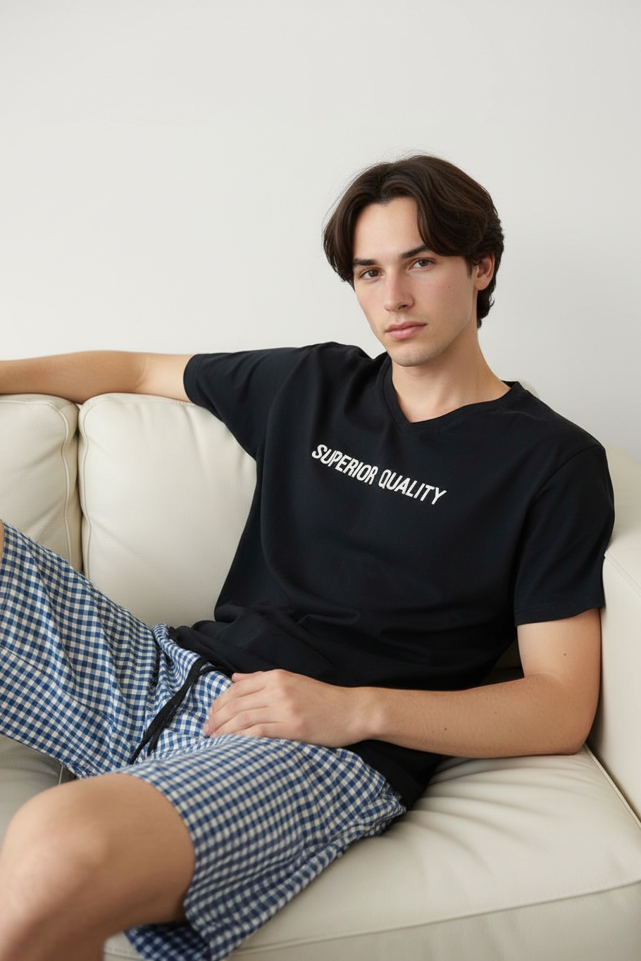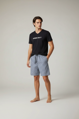 Уютный и мягкий, приятный к телу. Модный принт не оставит равнодушным никого. Стильная футболка и свободные, не стесняющие движения шорты, составляют гармоничный мужской силуэт.