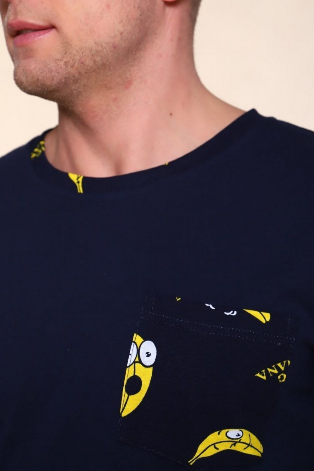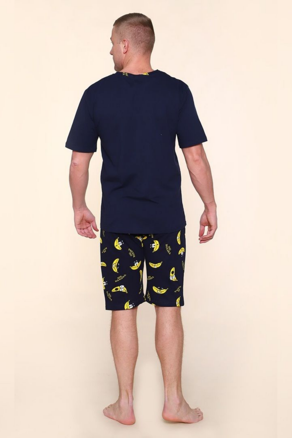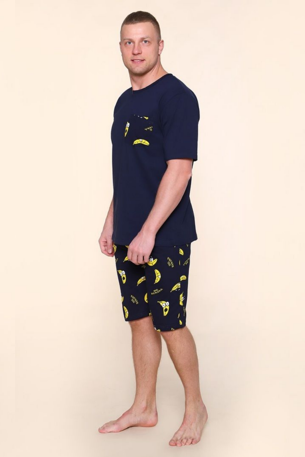 Этот мужской костюм из 100% хлопка (кулирная гладь) с ярким принтом бананы отличный выбор для тех, кто ценит позитивный дизайн и натуральные материалы в 2026 году. Цвет: чернильный; Материал: кулирка;кулирка; Состав: хлопок 100%.