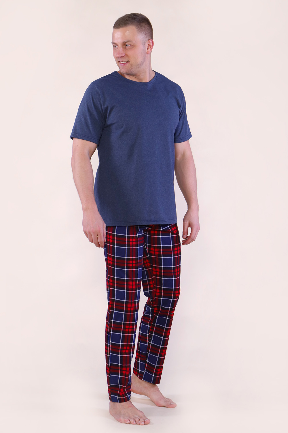 Комплект домашней одежды для мужчин от Руся трикотаж: уют и стиль Цвет: синий+красный; Материал: кулирка;кулирка; Состав: хлопок 100%.