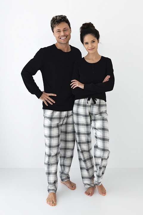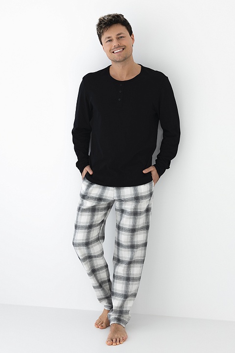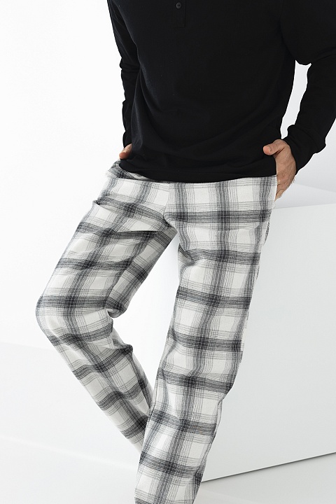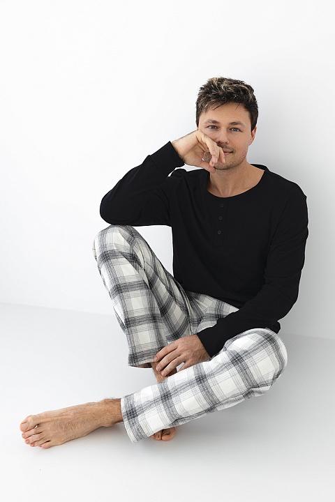 Мужская пижама Charles состоит из свитшота с длинными рукавами и брюк прямого кроя в крупную клетку. Состав брюк: хлопок 70%, полиэстер 29%, модал 1%. Идеальный вариант для домашнего отдыха.