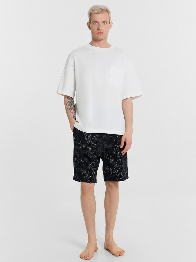 Домашние мужские шорты свободного силуэта. Выполнены из высококачественного хлопка – гипоаллергенного и приятного на ощупь. Пояс – с эластичной тесьмой и шнурком-завязкой, с помощью которого можно регулировать ширину в талии. По бокам шорт есть функциональные карманы для любимых мелочей. Шорты мужские — идеальный вариант на каждый день, расцветка и принты поднимают настроение и создают комфортную домашнюю атмосферу. Классный вариант домашней одежды на любое время года. Такие шорты легко можно сочетать с любым верхом из линейки домашней одежды для мужчин. Материал мягкий и эластичный, комфортный в носке и не стесняет движений. Если вам нужна базовая уютная вещь, которую вы сможете дополнить любимым верхом - это отличный вариант. Порадуйте себя и своих близких подарками от Mark Formelle из линейки мужской домашней одежды!