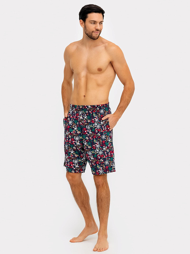 Домашние мужские шорты с принтом. Выполнены из высококачественного хлопка – гипоаллергенного и приятного на ощупь. Пояс – с эластичной тесьмой и шнурком-завязкой, с помощью которого можно регулировать ширину в талии. По бокам шорт есть функциональныекарманы для любимых мелочей. Шорты мужские — идеальный вариант на каждый день, расцветка и принты поднимают настроение и создают комфортную домашнюю атмосферу. Такие шорты легко можно сочетать с любым верхом из линейки домашней одежды для мужчин. Материал мягкий и эластичный, комфортный в носке и не стесняет движений. Если вам нужна базовая уютная вещь, которую вы сможете дополнить любимым верхом – это отличный вариант.