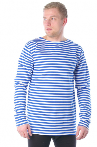 Тельняшка изготавливается из хлопчатобумажной трикотажной ткани с чередующимися горизонтальными полосками. Полосатые тельняшки стали традицией и весьма популярны в качестве романтического символа моря, морской службы, храбрости и удали. В производстве используется трикотаж, кулирное полотно, плотностью 150 г/м2 состав 100% хлопок.