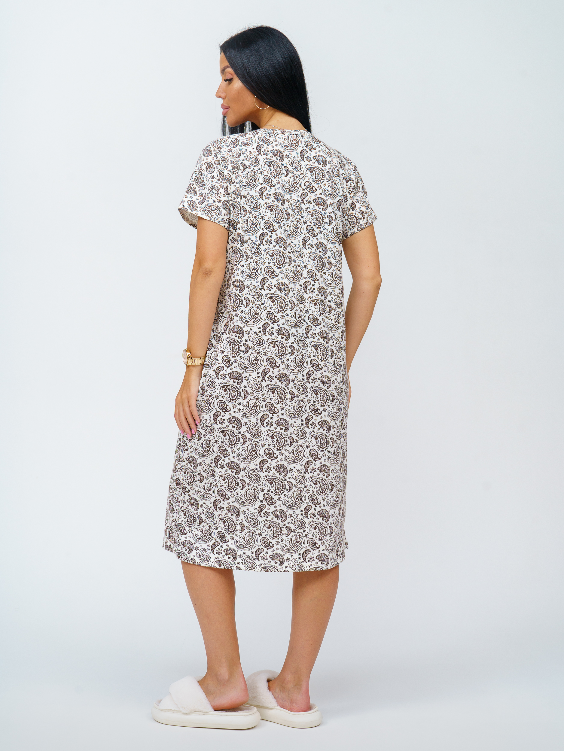 Представляем вашему вниманию женскую сорочку, выполненную из высококачественной кулирки (100% хлопок). Эта сорочка станет идеальным выбором для создания комфортного и стильного образа на каждый день! Основные характеристики: Качественный материал: Изготовлена из 100% хлопка, что обеспечивает отличную воздухопроницаемость и комфорт при носке, идеально подходит для теплых дней. Круглый вырез: Элегантный круглый вырез придает сорочке женственный и утонченный вид, подчеркивая линию шеи. Рукав как у футболки: Удобные рукава в стиле футболки обеспечивают свободу движений и комфорт, делая сорочку универсальной для повседневного использования. Свободный крой: Свободный крой обеспечивает легкость и непринужденность, позволяя вам чувствовать себя комфортно дома. Длина ниже колена: Идеальная длина ниже колена делает сорочку подходящей как для сна, так и для домашнего ношения. Эта женская сорочка станет отличным дополнением к вашему ассортименту и привлечет внимание клиентов, ценящих комфорт и стиль. Заказывайте оптом и предложите своим покупателям универсальную модель, которая станет любимым элементом их гардероба!
