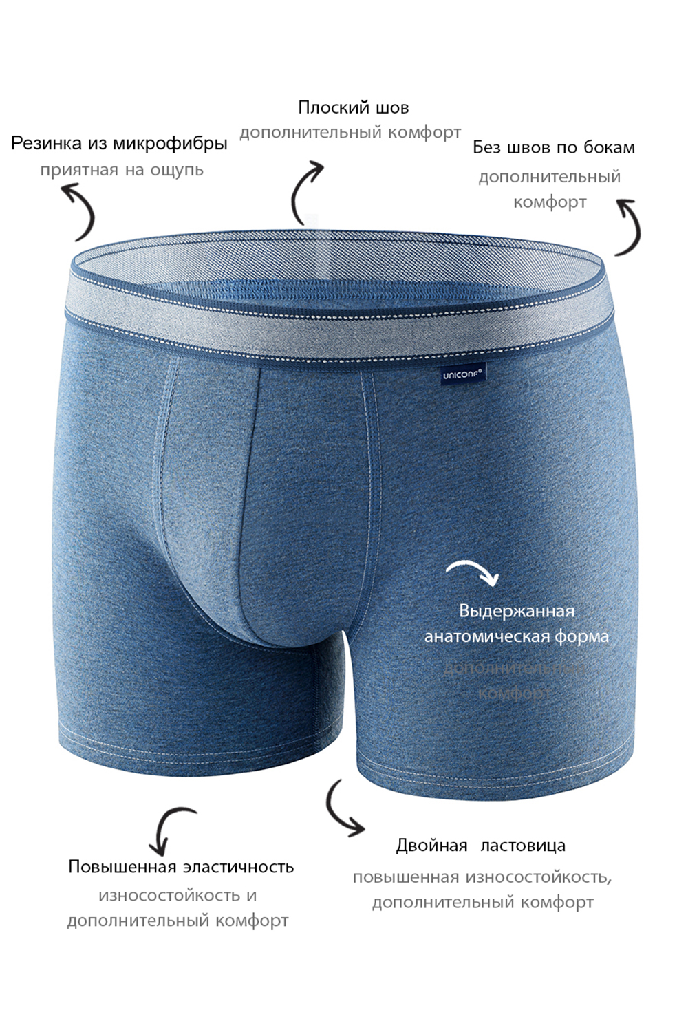Классические боксеры UNICONF из премиального гипоаллергенного хлопка меланж с добавлением эластана. Пришивная резинка обеспечивает терморегуляцию и комфортное прилегание к телу. Усиленная передняя панель, вшитая ластовица и отсутствие боковых швов делают изделие устойчивым к стиркам и продлевают срок использования. Модель не заметна под одеждой, имеет анатомически правильный крой, что в сочетании с инновационными технологиями обработки швов позволяет сделать фигуру визуально более подтянутой и спортивной.