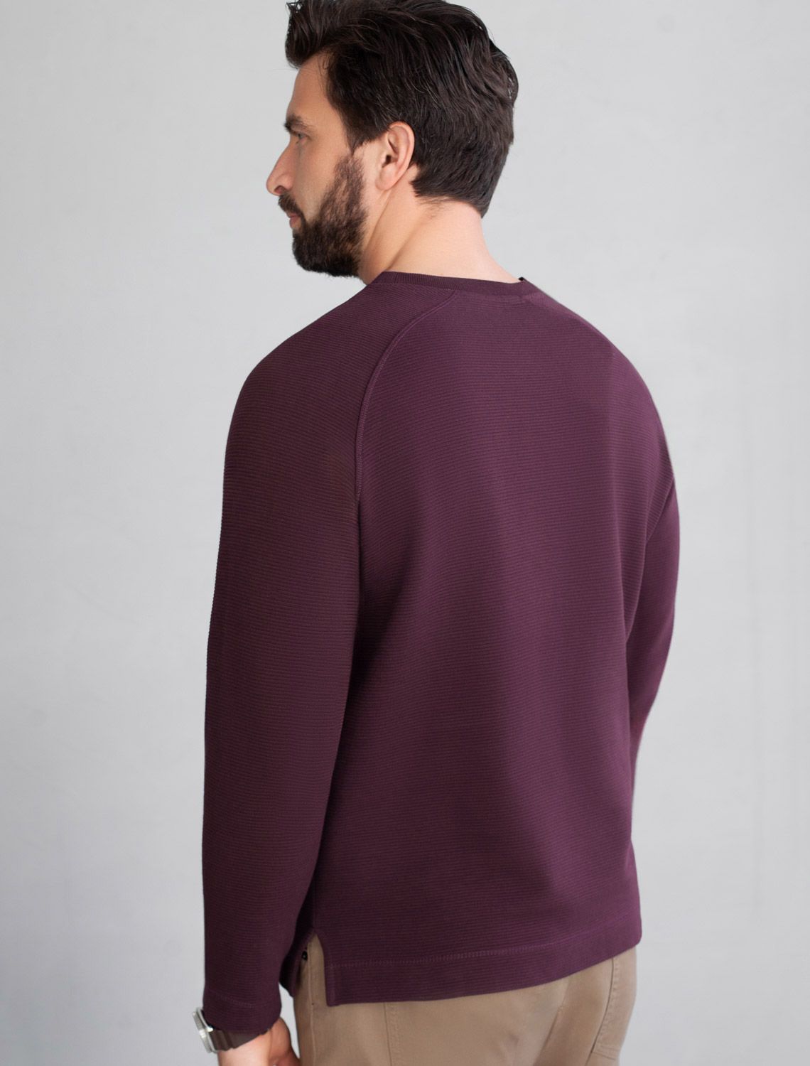 Джемпер базовый из мягкого фактурного трикотажа с круглым воротом U49.063 бургунди